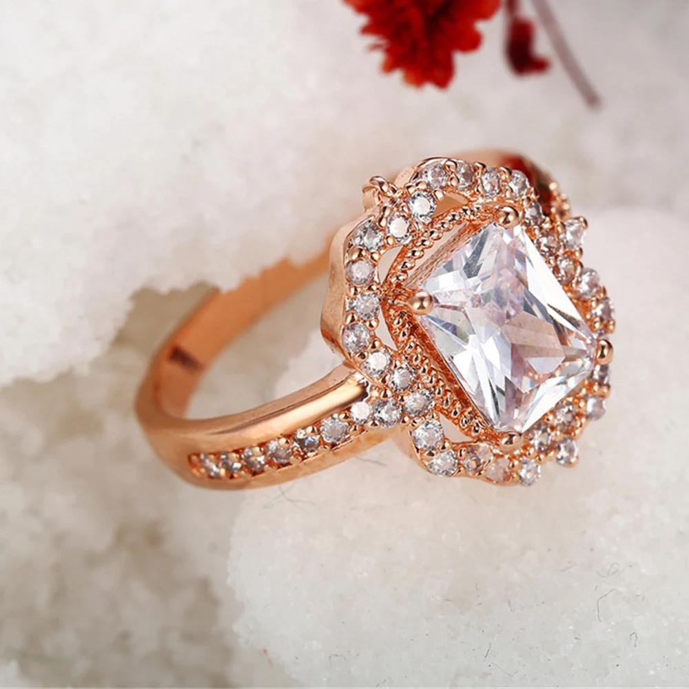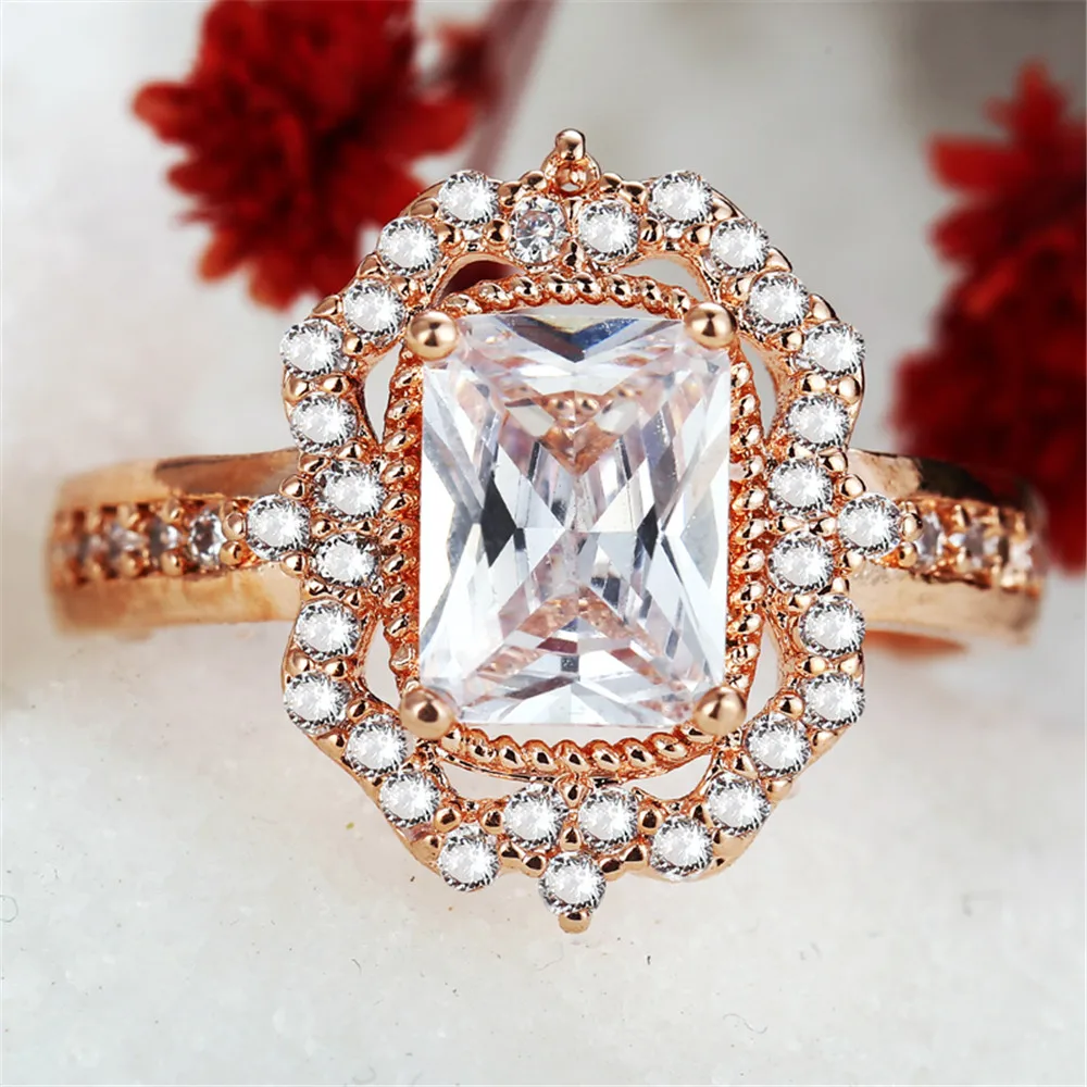 17KM Fashion Big Cubic Zirconia Rings For Women Romantic Crystal Engagement Wedding Party Ring Female Bijoux Jewelry Accessories