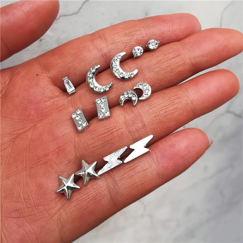 17KM Fashion Crystal Moon Star Stud Earrings Set For Women Lightning Round Earring Statement Jewelry Accessories Drop Shipping