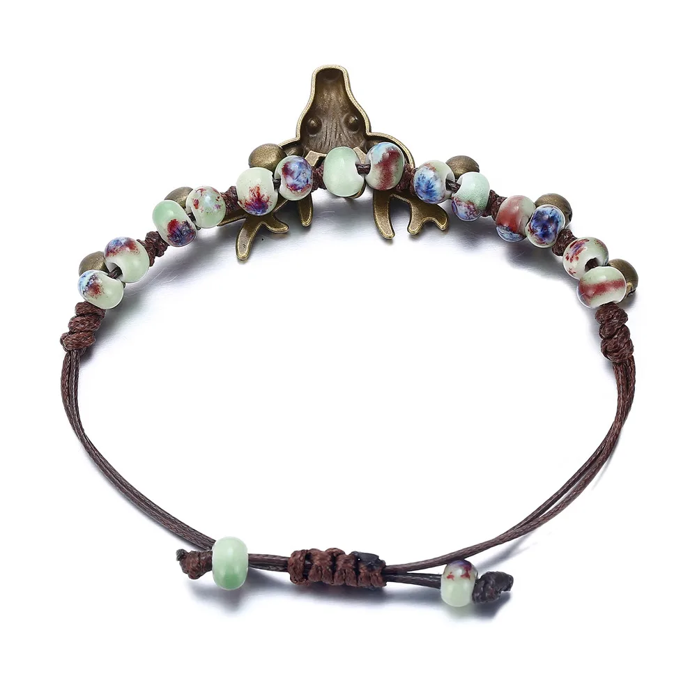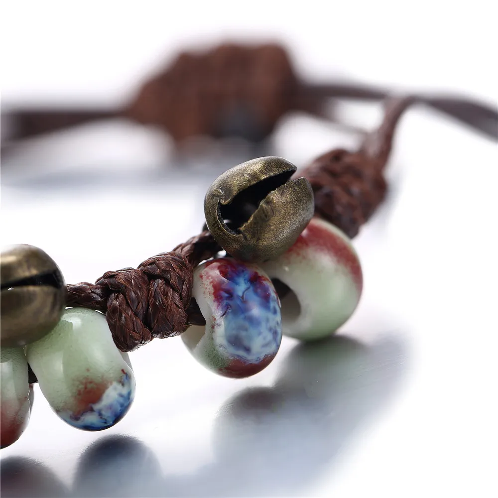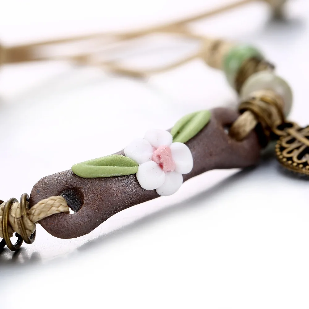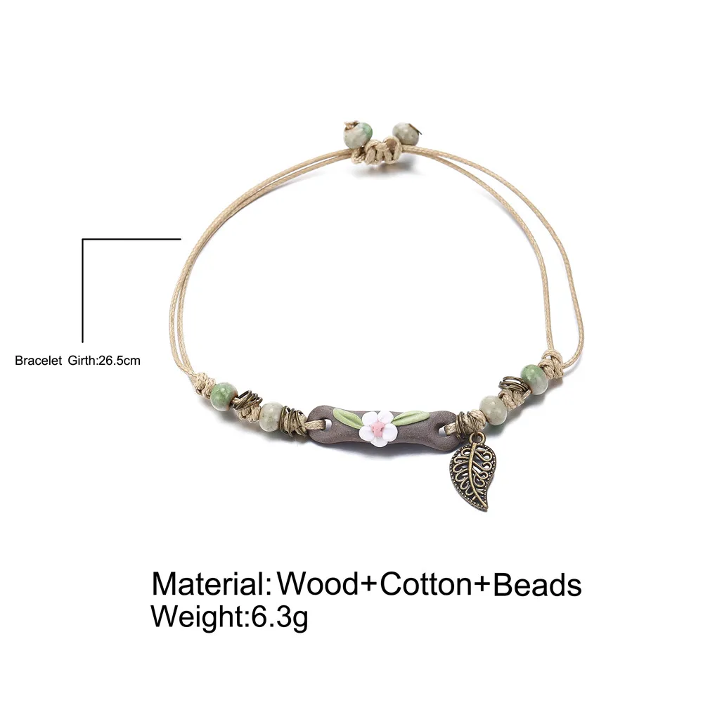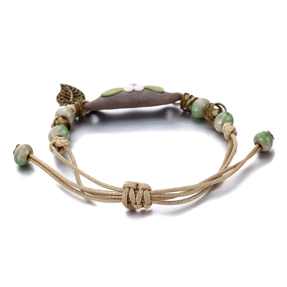 17KM Handmade Ceramic Flower Bracelets For Women Girls Gift Retro Leaf Beads Weave Rope Charm Bracelet Jewelry New Drop Shipping