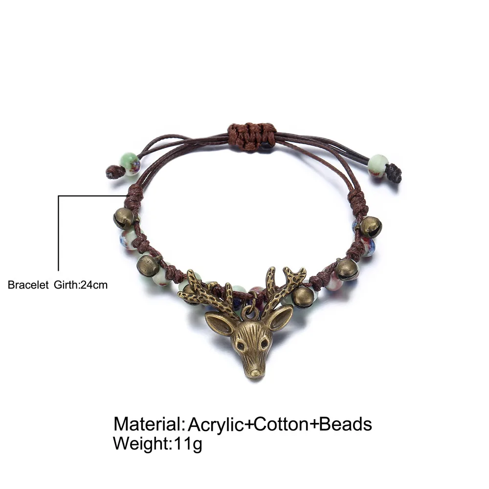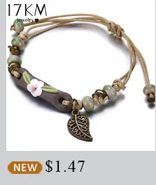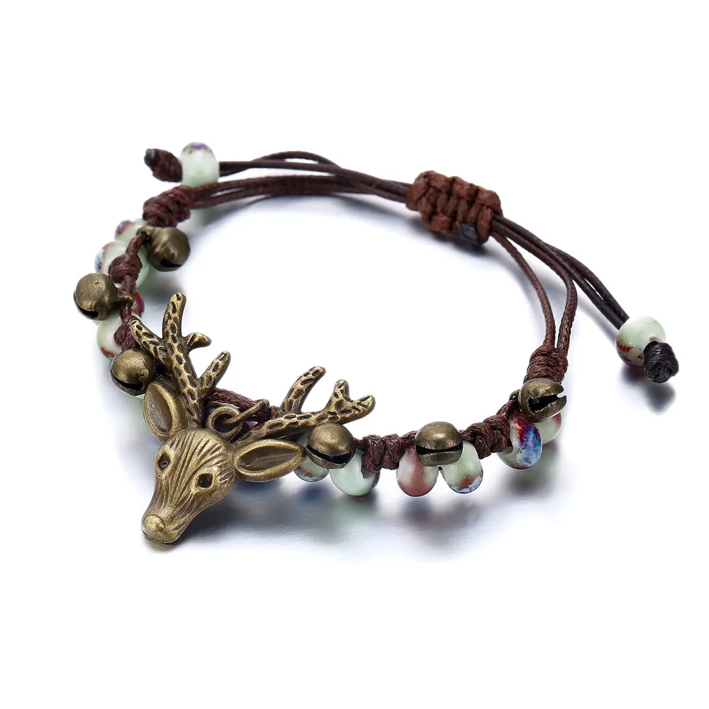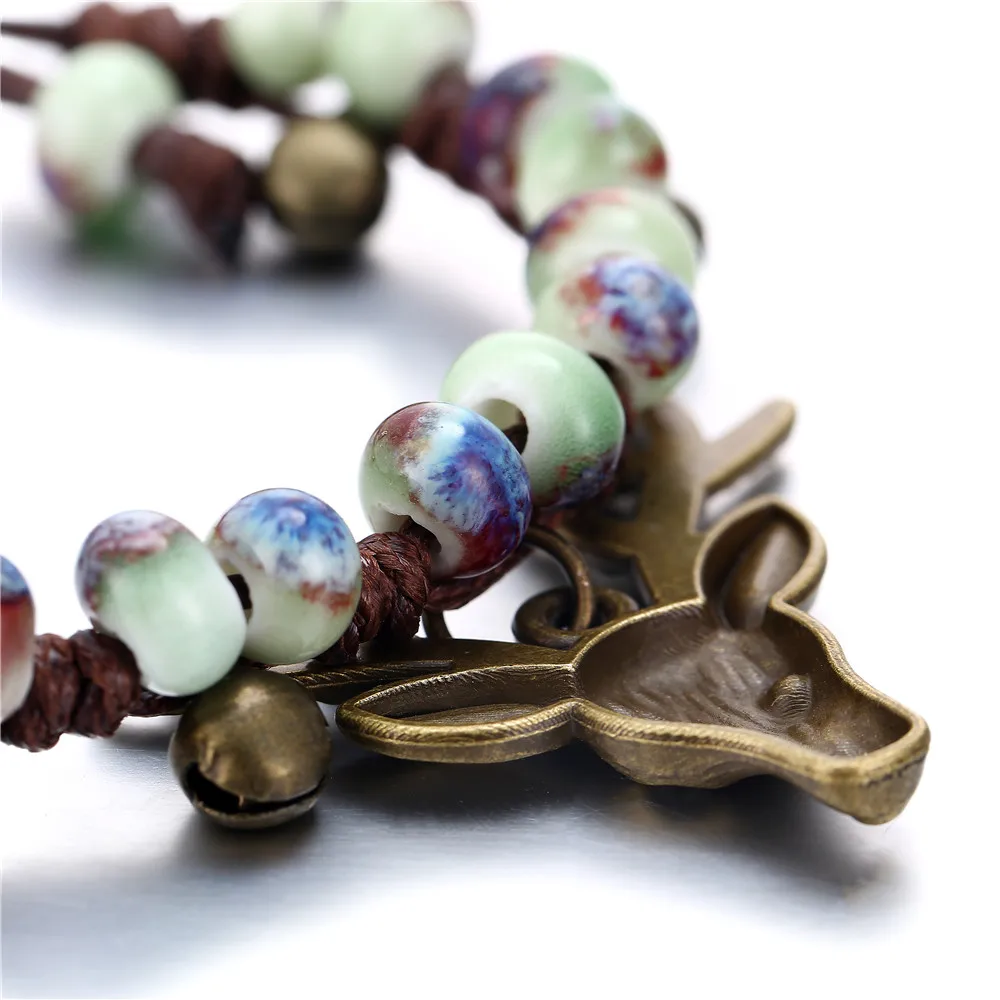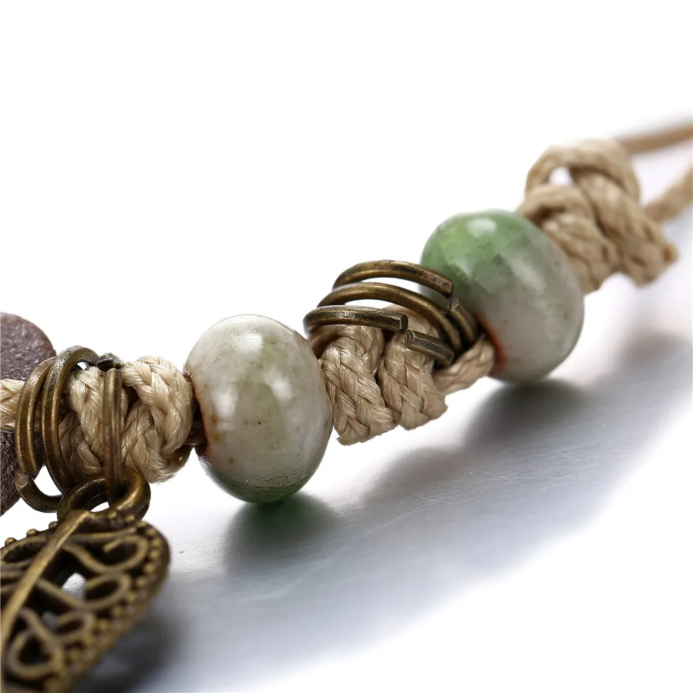 17KM Handmade Ceramic Flower Bracelets For Women Girls Gift Retro Leaf Beads Weave Rope Charm Bracelet Jewelry New Drop Shipping