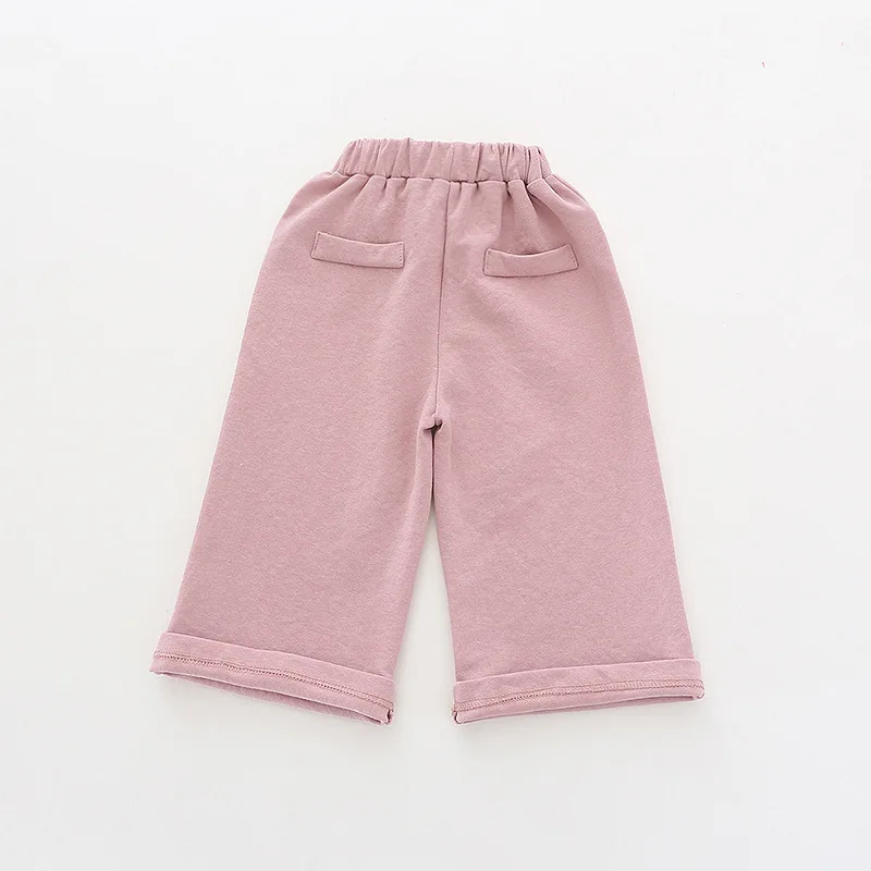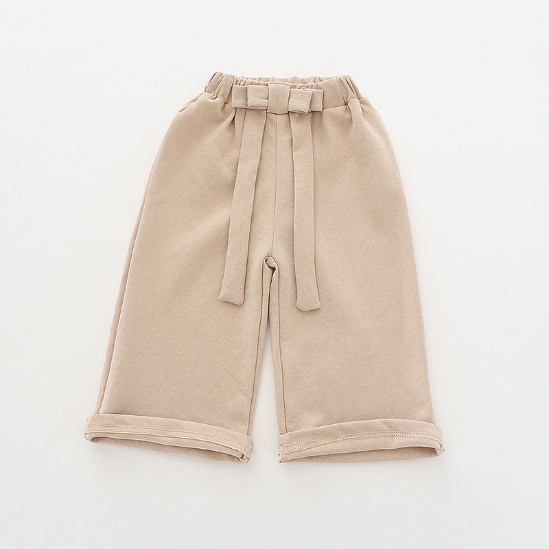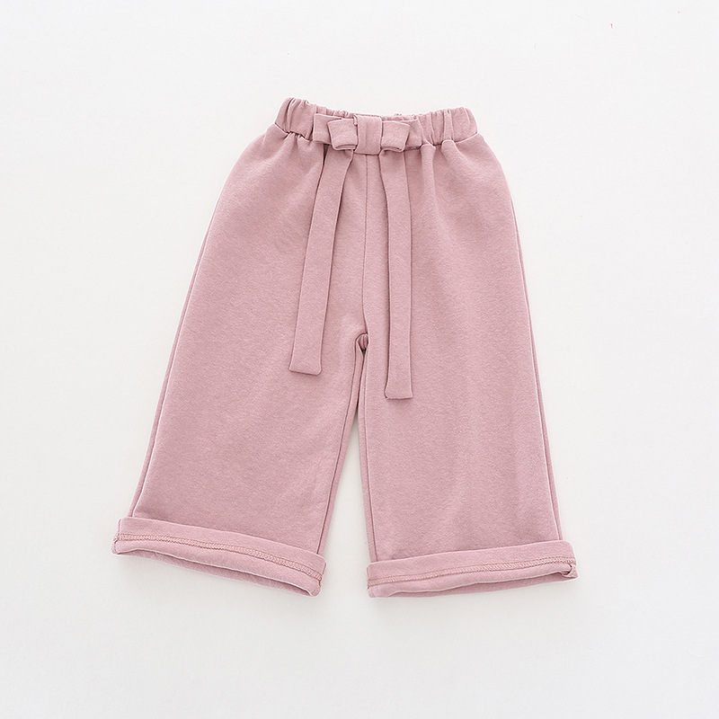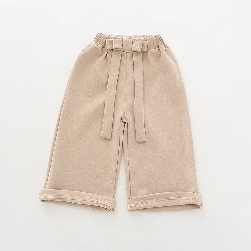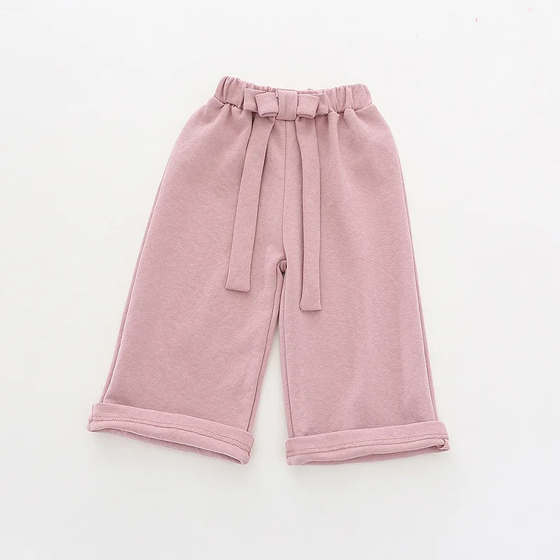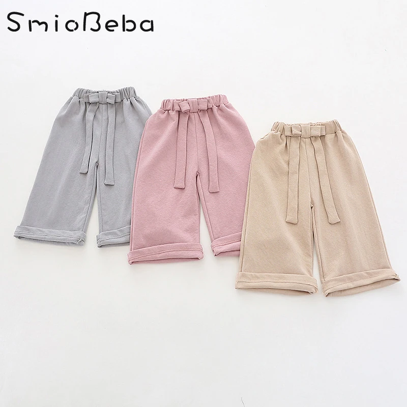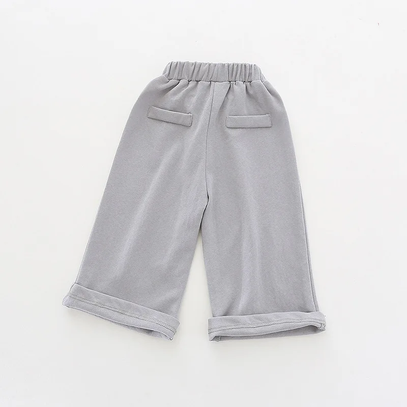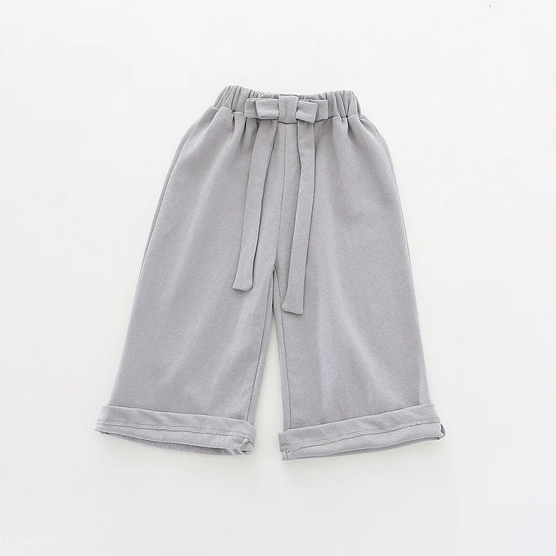 18 Autumn Girls Pants Wide Leg Trousers Children Long with Bow Unisex Boys Gray Pant Korean Style of Pure Cotton Children Pants