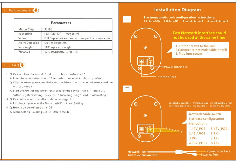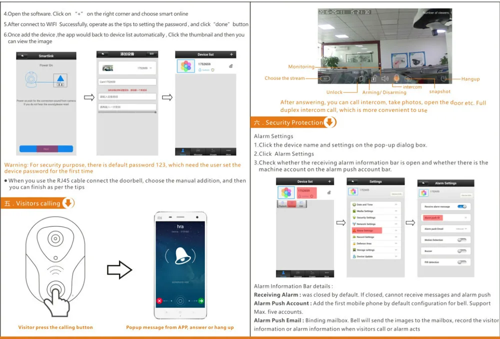 180 degree lens ,1.3MP Video Door Intercom WiFi IP Camera System Support 433 Series Wireless Alarm Doorbell 163Eye HD Visual Intercom WiFi Door Bell .