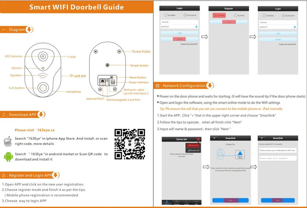 180 degree lens ,1.3MP Video Door Intercom WiFi IP Camera System Support 433 Series Wireless Alarm Doorbell 163Eye HD Visual Intercom WiFi Door Bell .