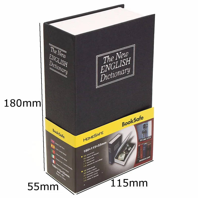 180x115x55mm Metal Paper Plate Dictionary Book Secret Hidden Security Safe Key Lock Cash Money Jewellery Locker Durable Quality