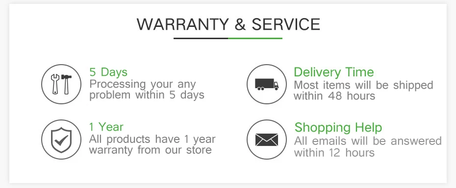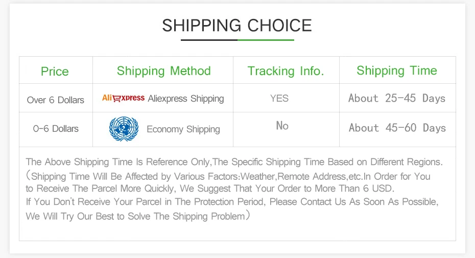 • If you did not receive the product within the guaranteed time( 45 days not including 2-5 day processing) you can request a refund or a reshipment.