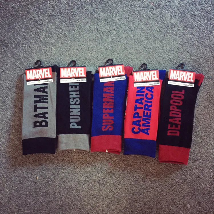 1pair Cotton Men’s Socks of Avenger Union Captain America Superman Batmen Deadpool Punisher Street Tide Skateboard Socks