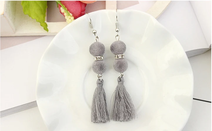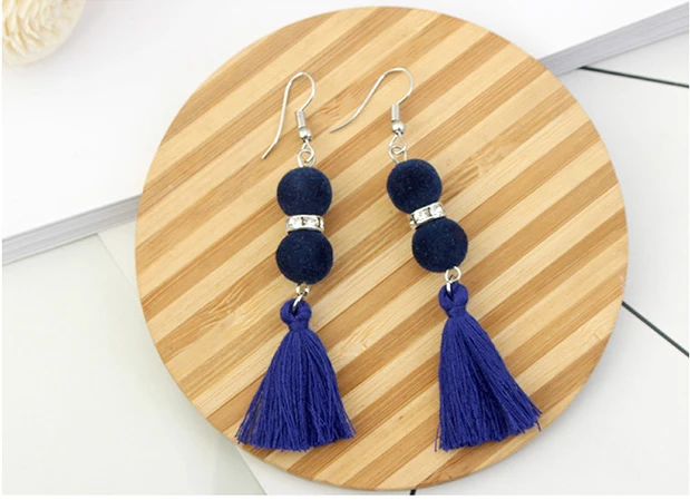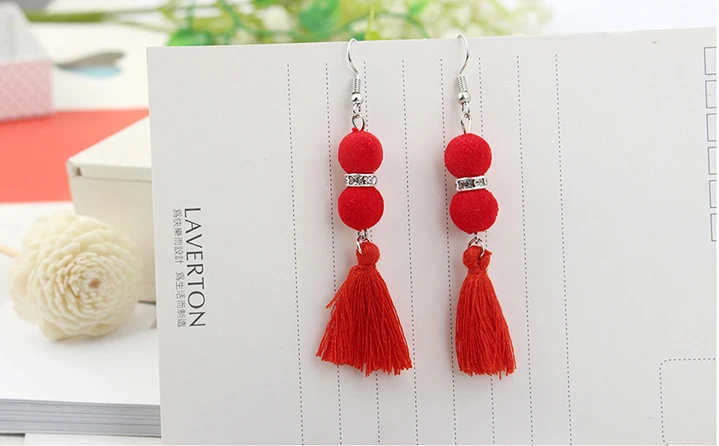 1pair Creative design balls, tassels, long earrings, women’s Retro temperament, earrings, dress accessories.