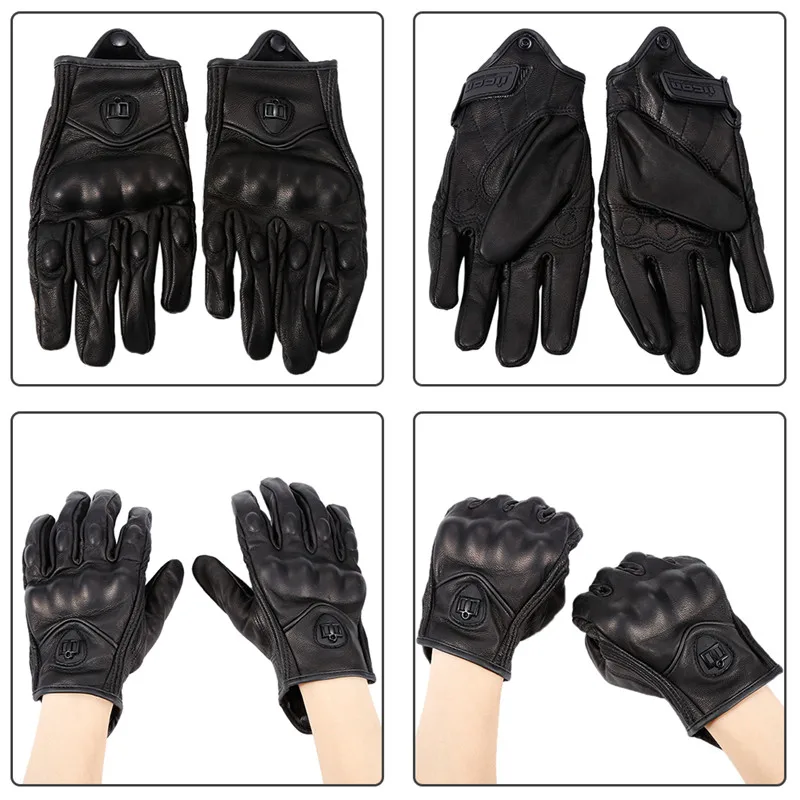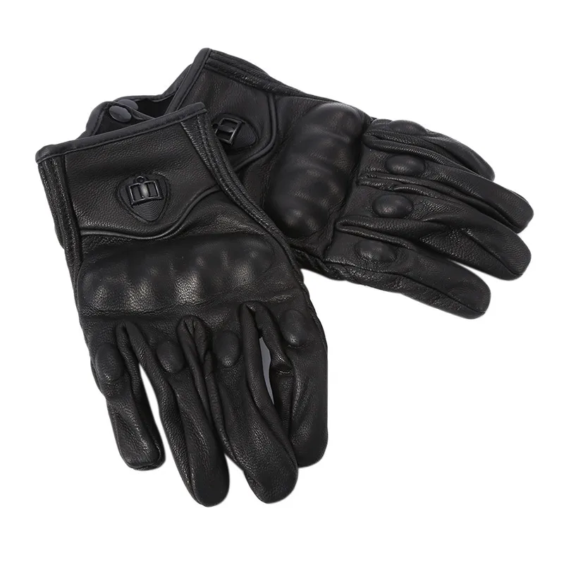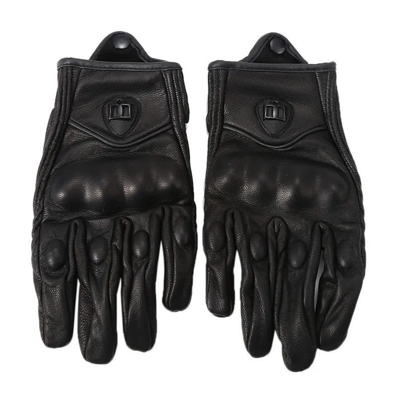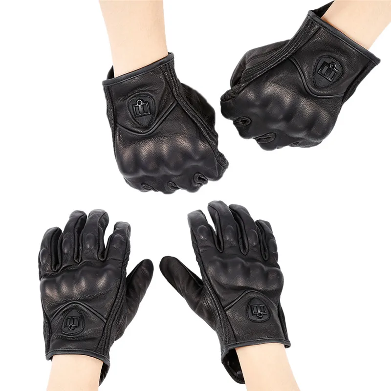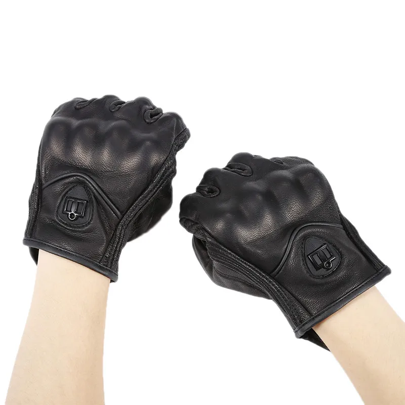 1Pair Pure Leather Black Unisex Non-Perforated Pursuit Street Motorcycle Racing Gloves Auto Car Styling Car Accessories Camping