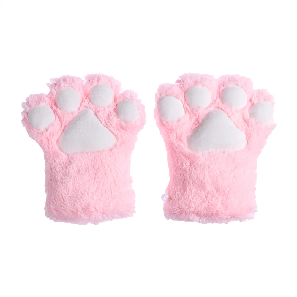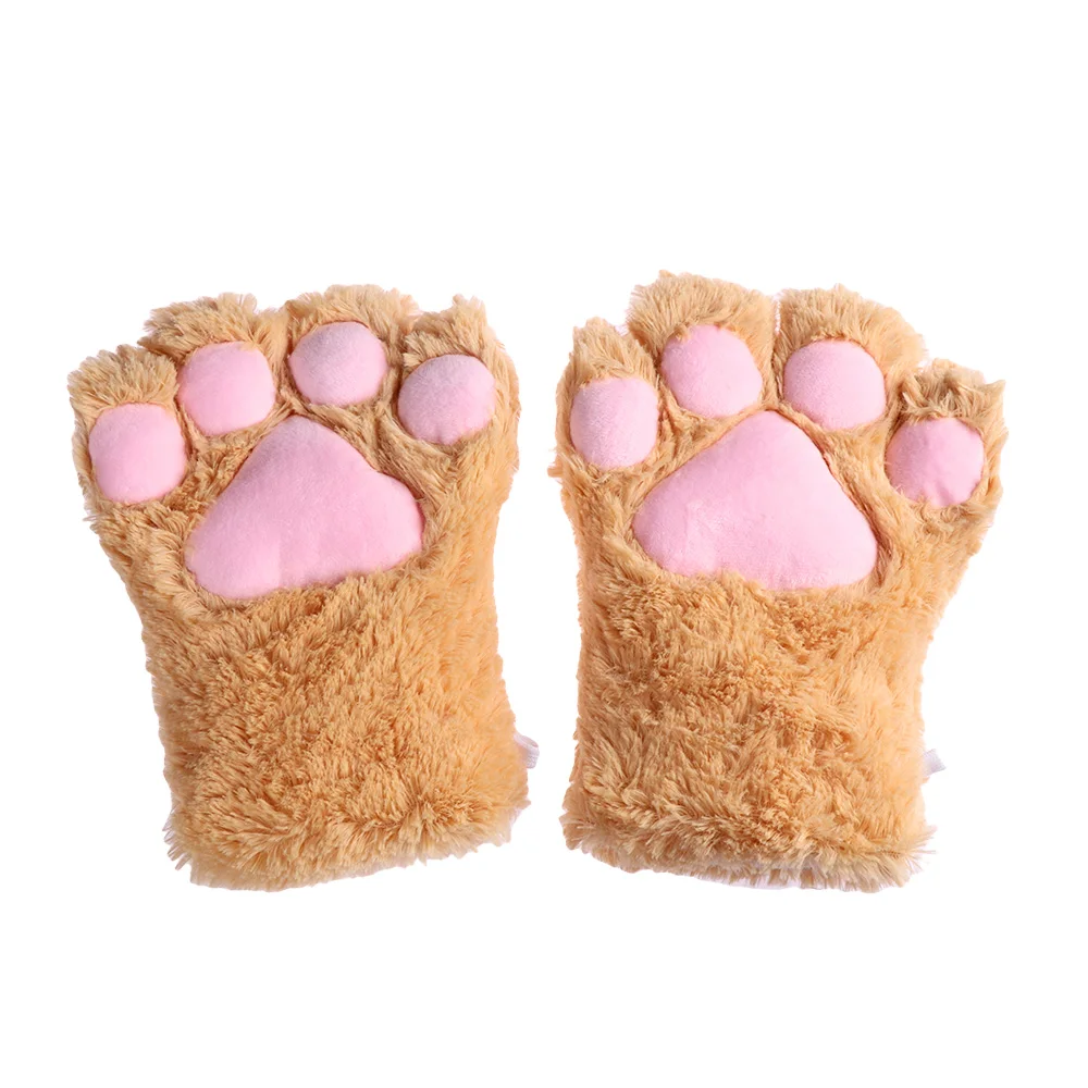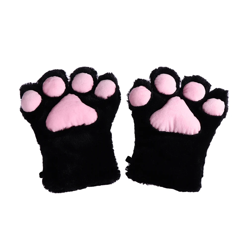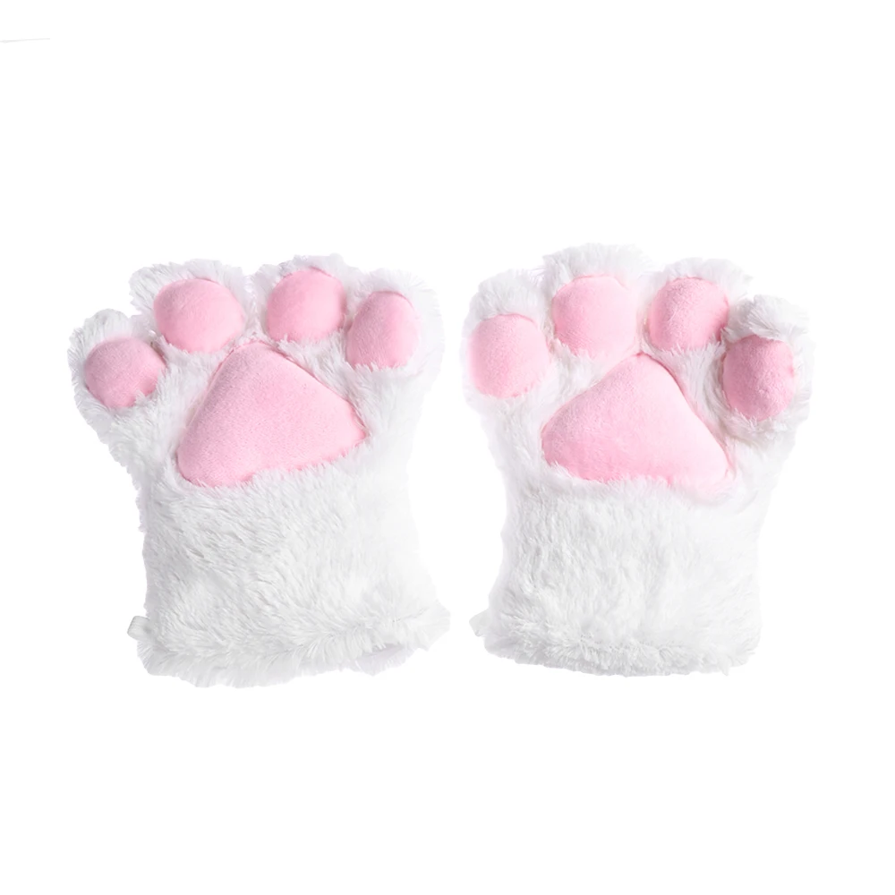 1Pair Women Girls Cute Cat Kitten Paw Claw Warm Gloves Soft Anime Cosplay Plush for Halloween Party Accessories