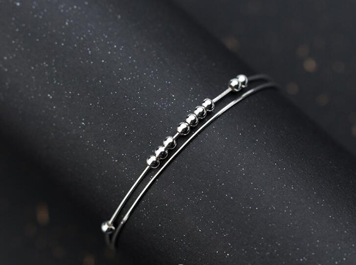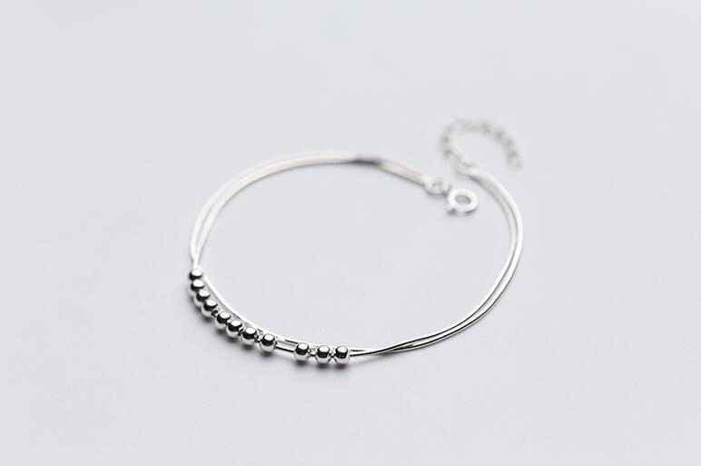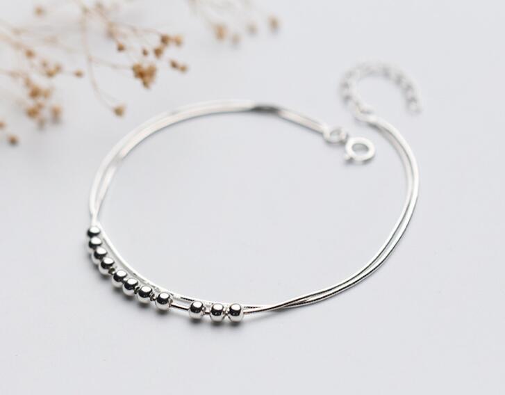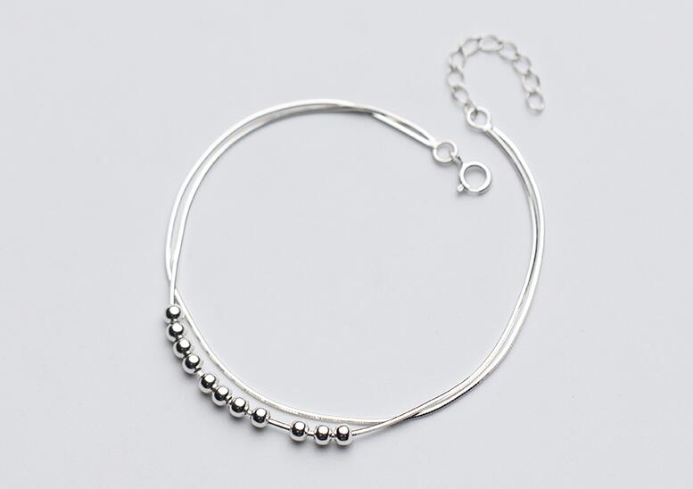 Name: 1pc 100% Real. 925 Sterling Silver Fine Jewelry Double Rows Snakebone chain Lucky Beads Anklet Bracelet GTLS665