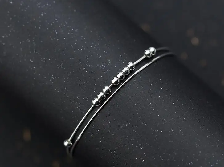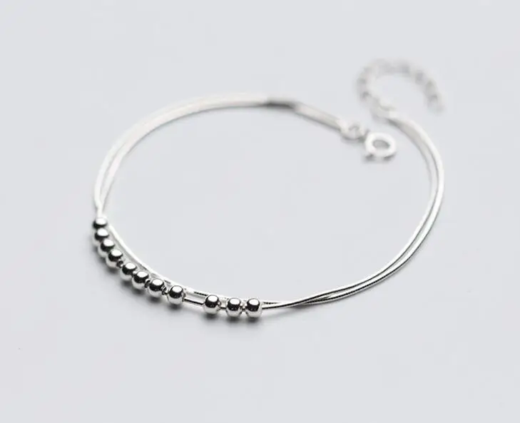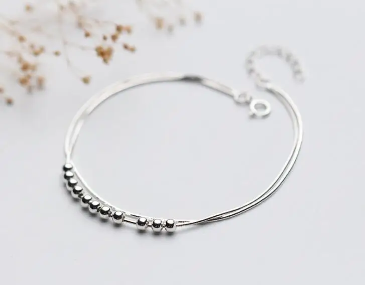 Name: 1pc 100% Real. 925 Sterling Silver Fine Jewelry Double Rows Snakebone chain Lucky Beads Anklet Bracelet GTLS665