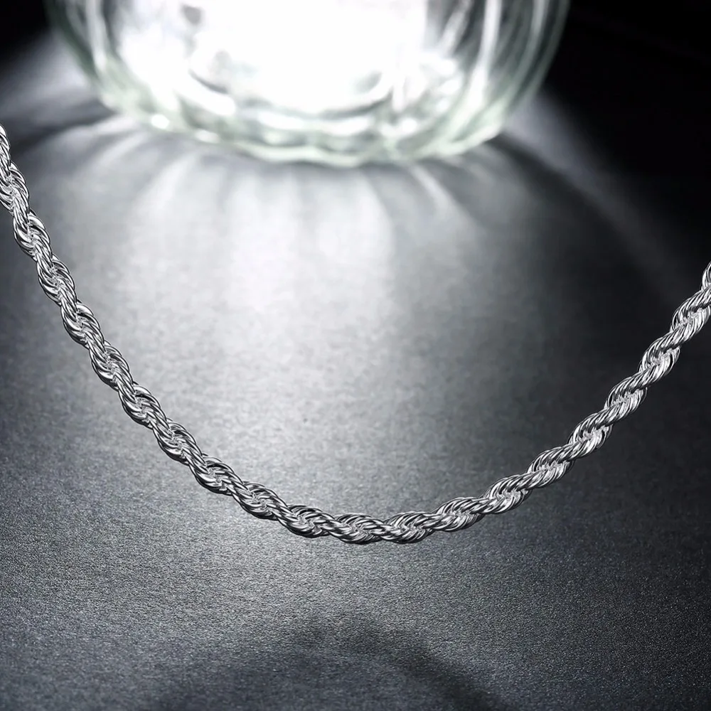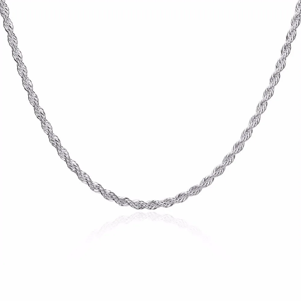 1PC 3mm Width Pure 925 Sterling Silver Charm Rope Necklace Chains Jewelry With Good Quality Lobster Clasps Set 16-24Inches