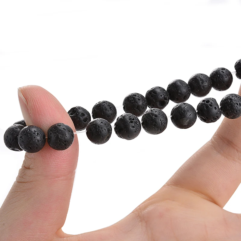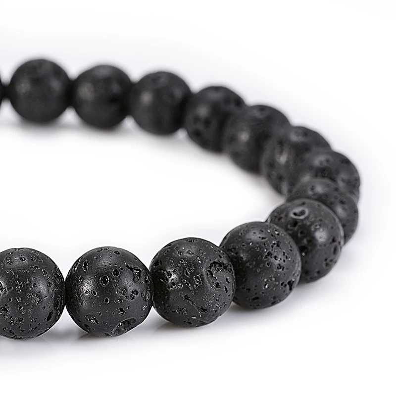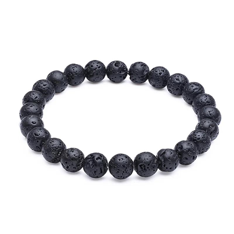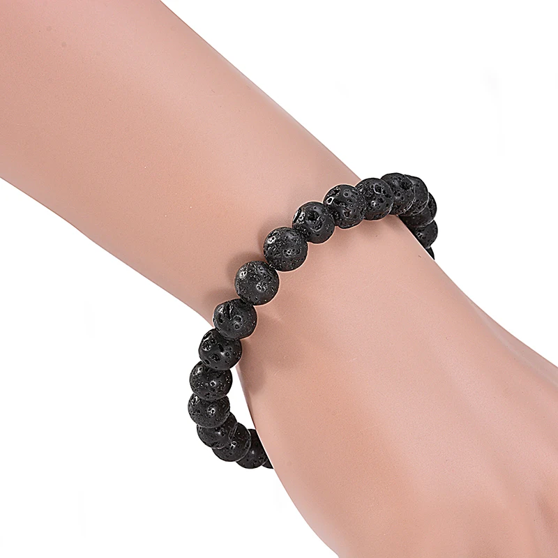 1Pc 6mm 8mm 10mm Essential Oil Black Lava Rock Stone Beads Expandable Mens Beaded Bracelet For Men Gift