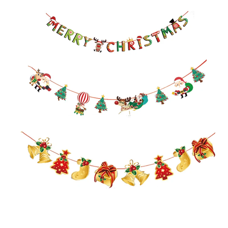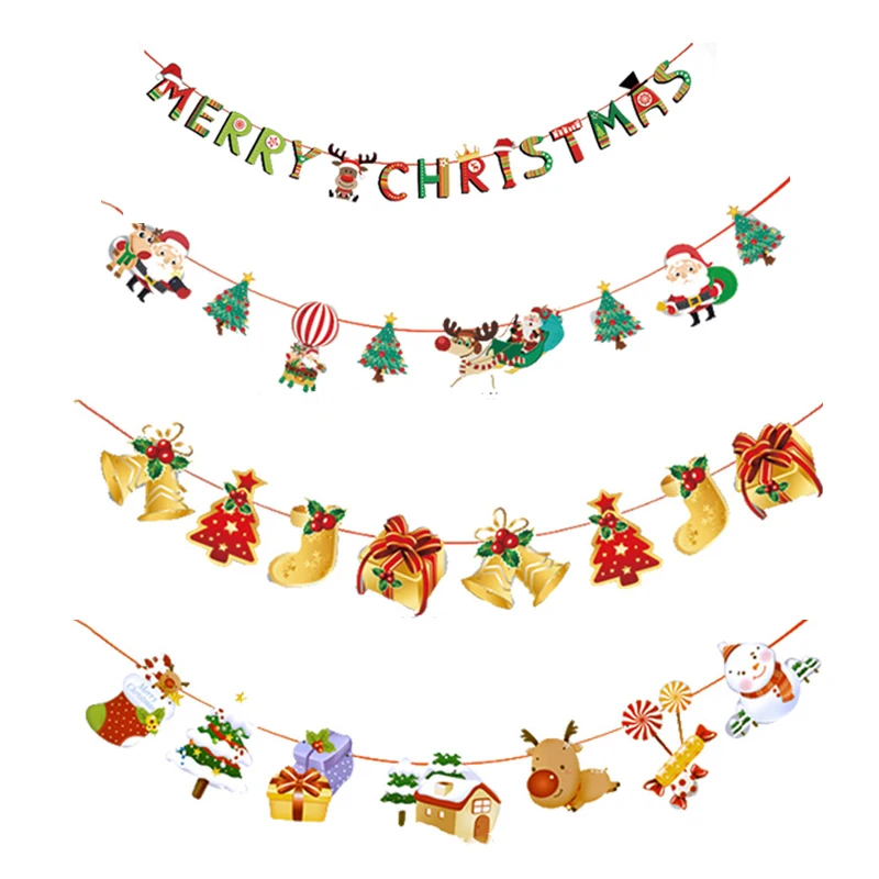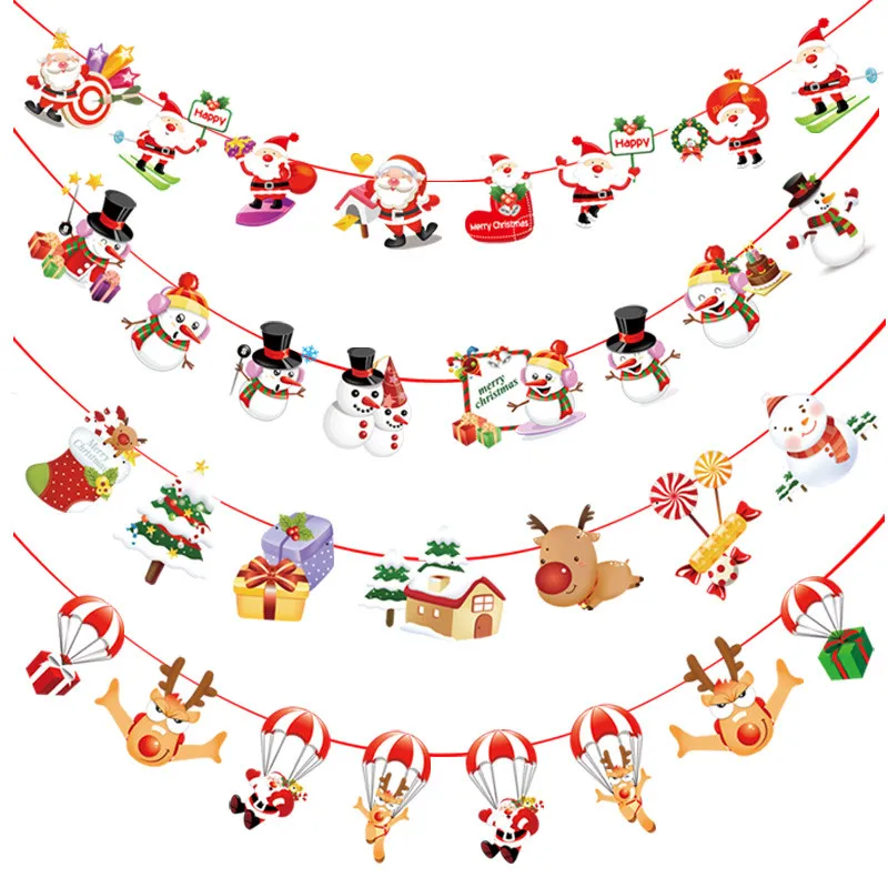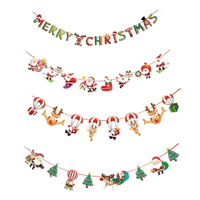 1pc Christmas Banner Flag New Year Party Decoration Santa Snowman Parachute Xmas Tree Dog Flags Garlands Christmas Party Decor