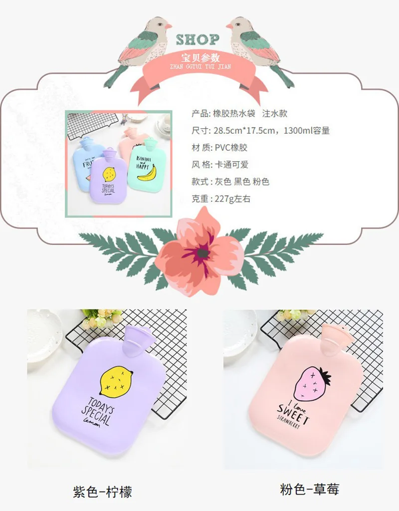 1Pc Cute cartoon Winter Warmer PVC Hot Water Bottle Hand Thick High-Density Home Heating Props