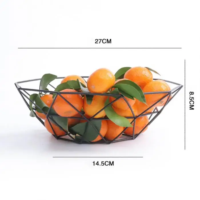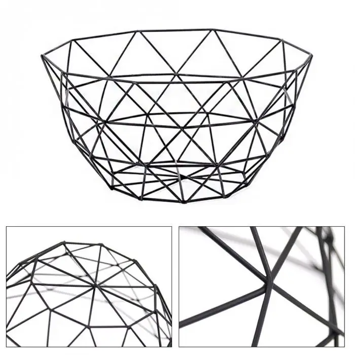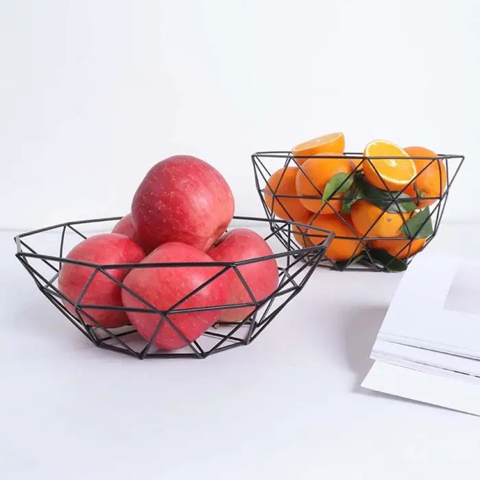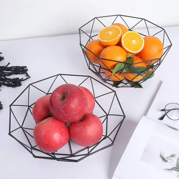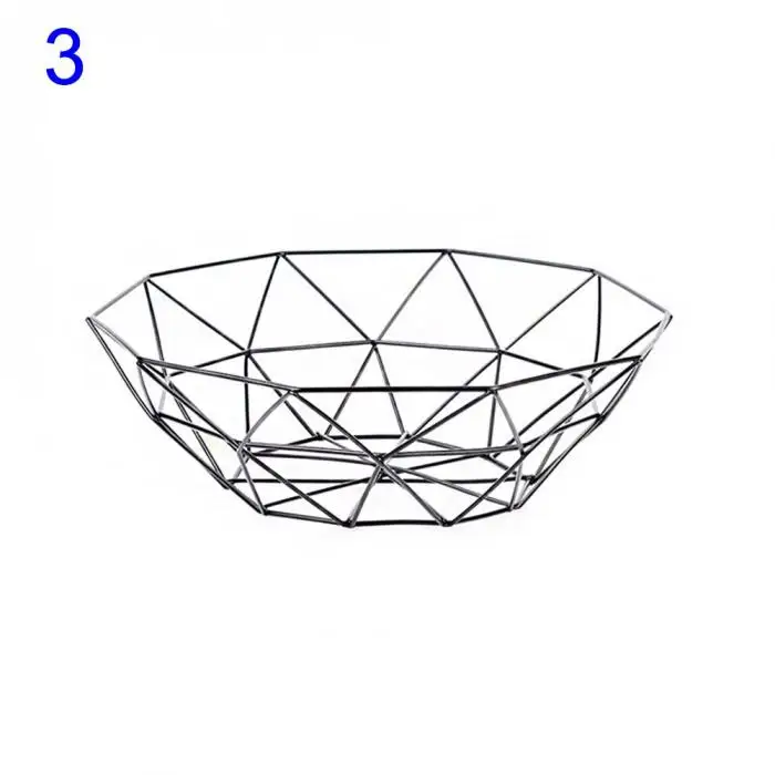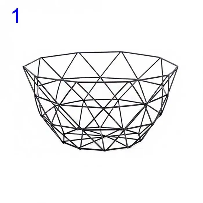 1Pc Fruit Tray Drain Basket Household Iron Fruit Bowl Geometric Patterns LBShipping