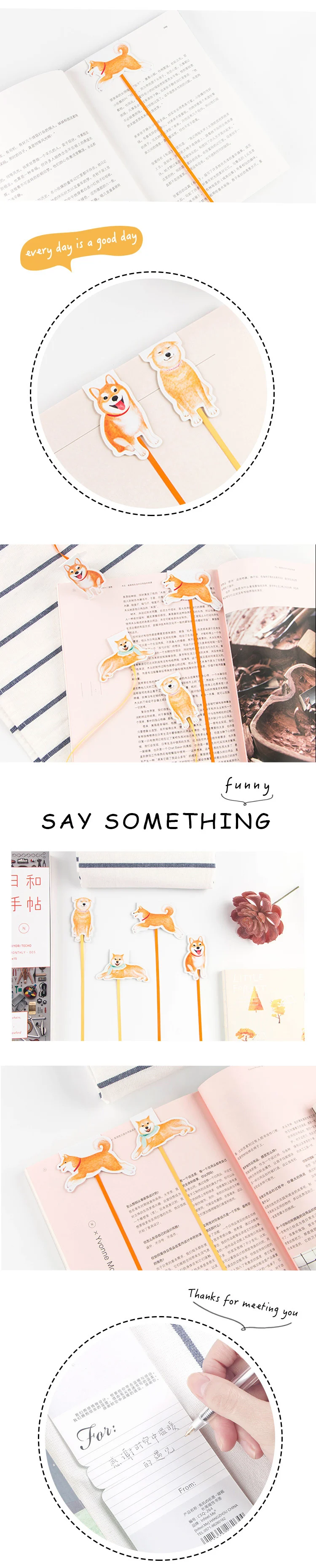 1pc Kawaii Shiba Inu Dog Magnetic Bookmark With Long Ribbon Creative Korean Stationery School Office Bookmark For Kids Gift