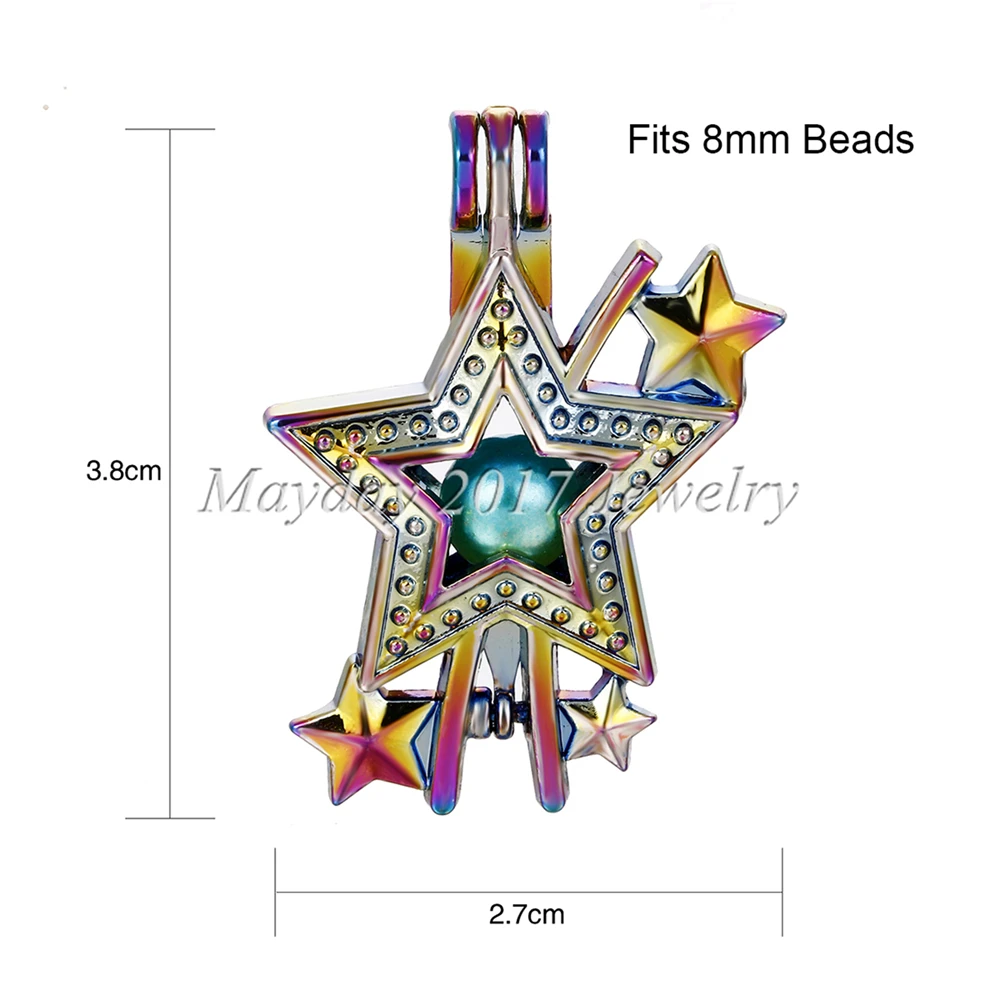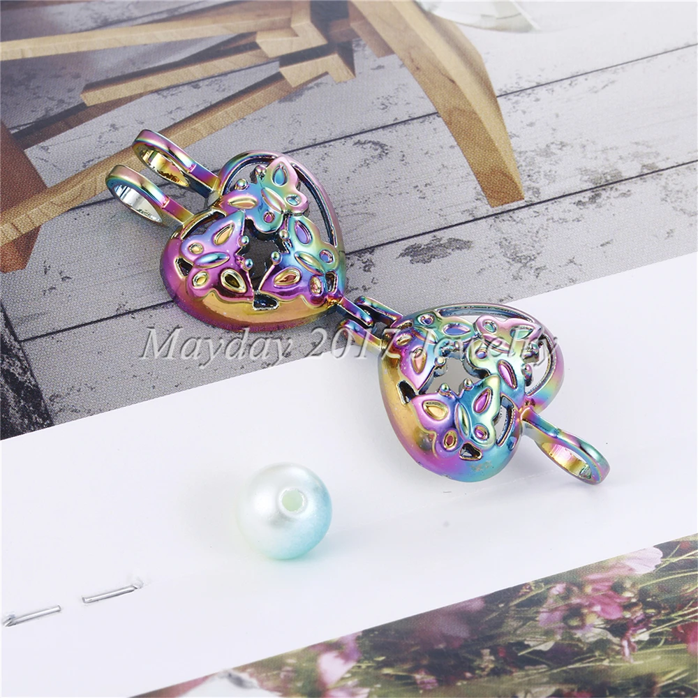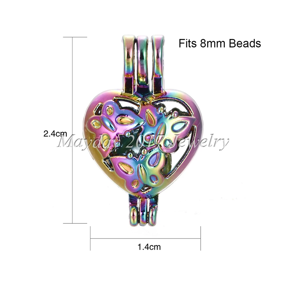 1pc Rainbow Color Butterfly Stars Pearl Beads Cage Locket Pendant Essential Oil Diffuser DIY Jewelry Locket For Oyster Pearls