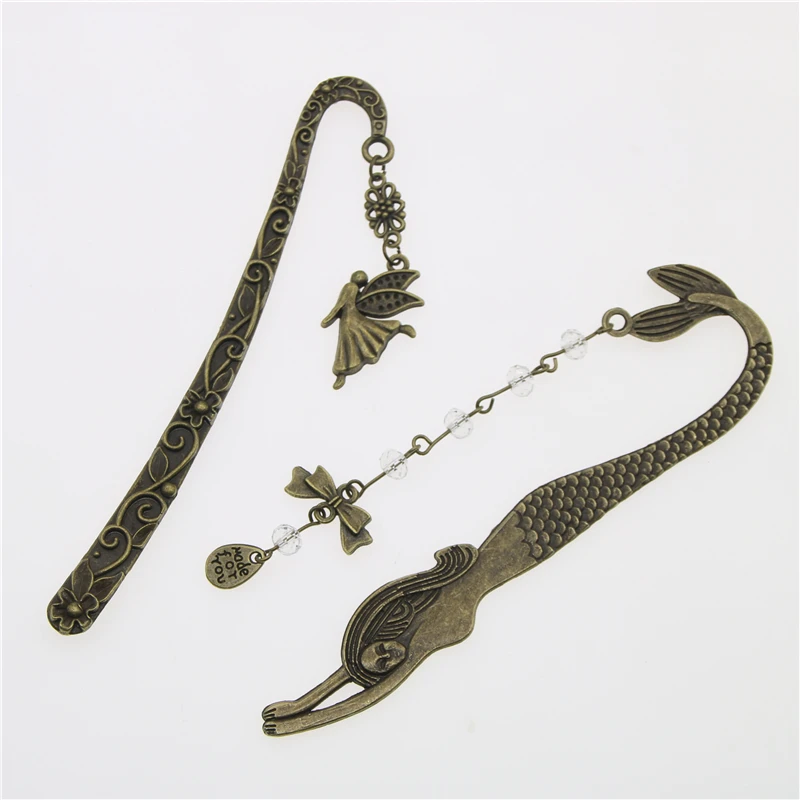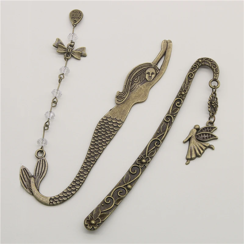 1Pc Retro Alloy Metal Bookmark Mermaid Beaded Or Angels Butterfly Fashion Vintage Bookmark