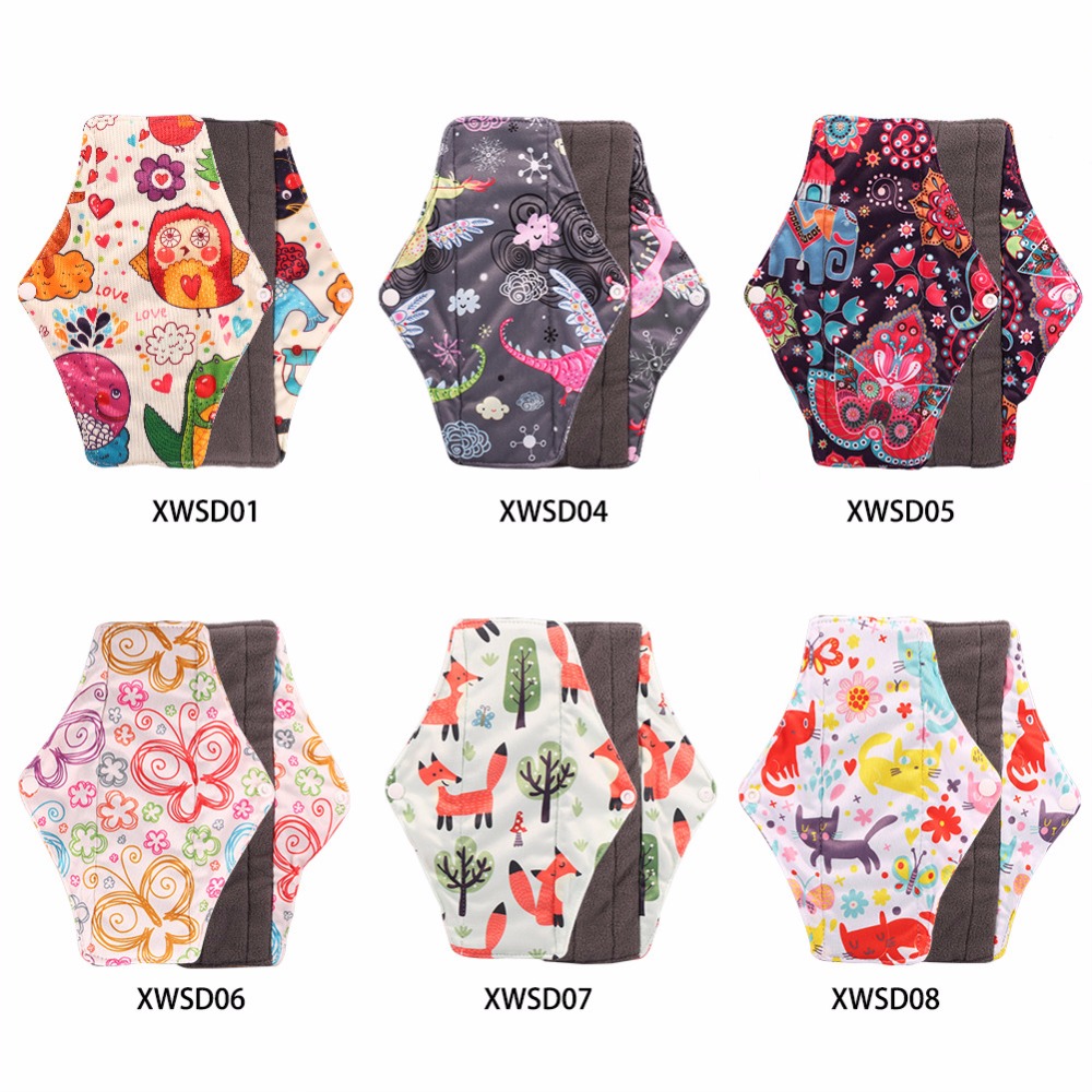 1PC Reusable Menstrual Pads 6 Colors M Size Charcoal Bamboo Cloth Menstrual Pads Washable Sanitary Towel Pads For Pregnant Women