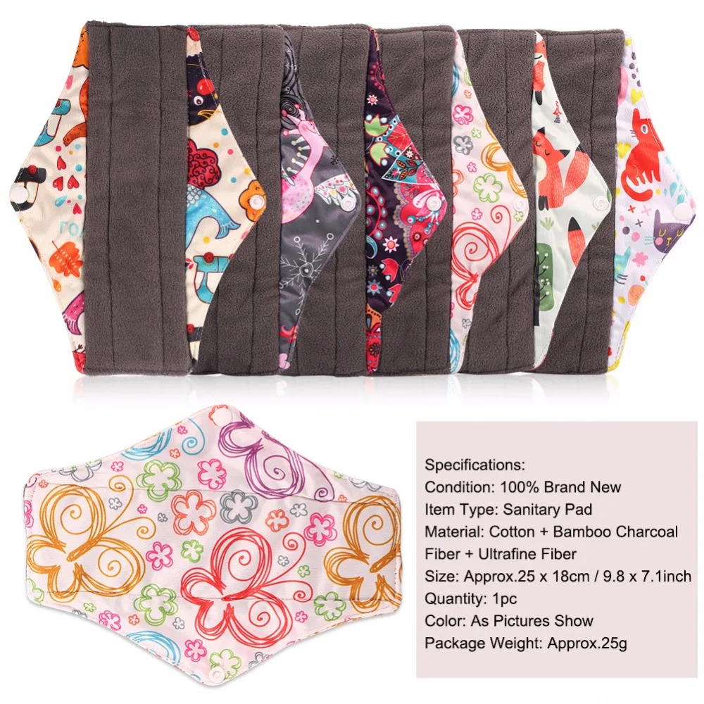 1PC Reusable Menstrual Pads 6 Colors M Size Charcoal Bamboo Cloth Menstrual Pads Washable Sanitary Towel Pads For Pregnant Women