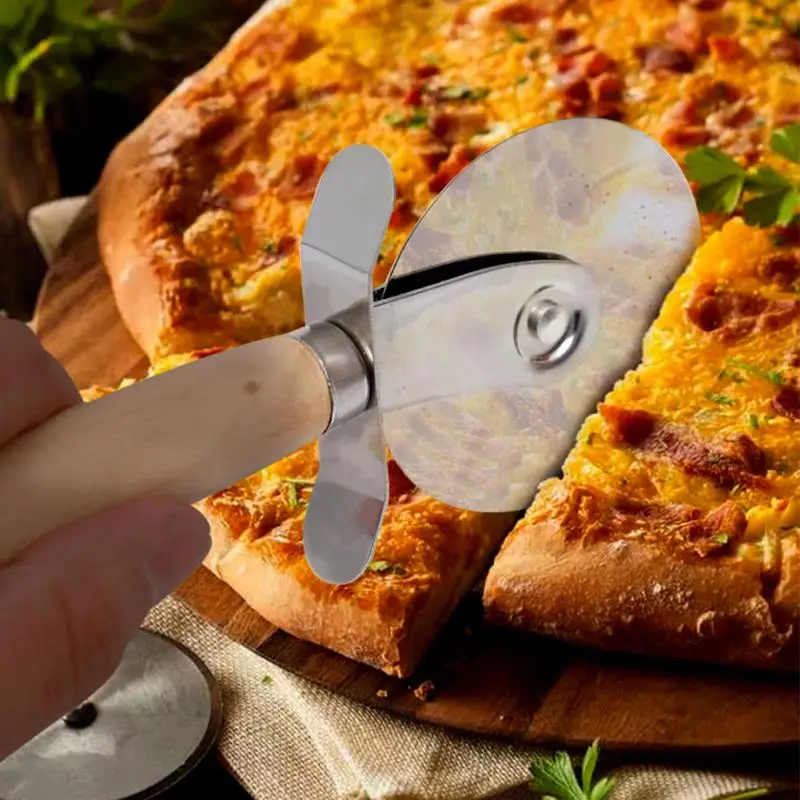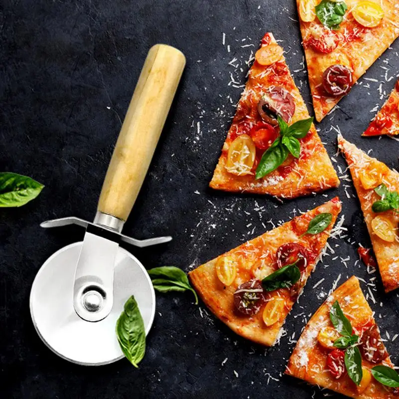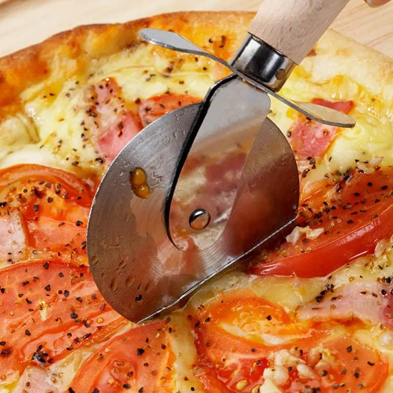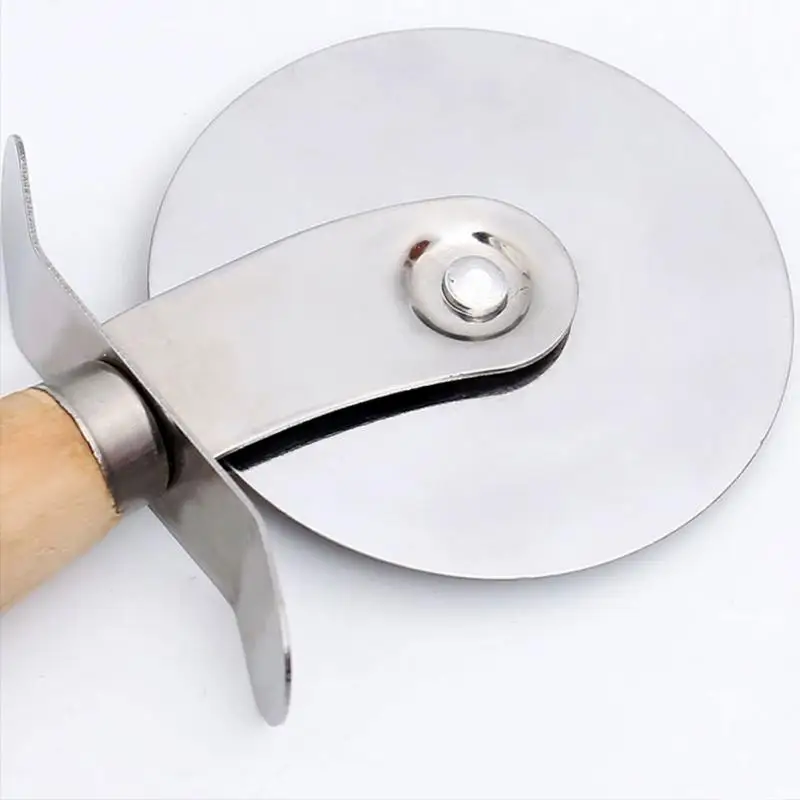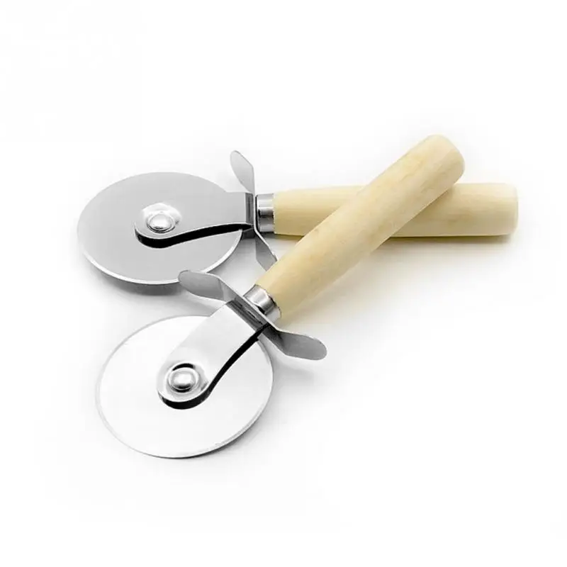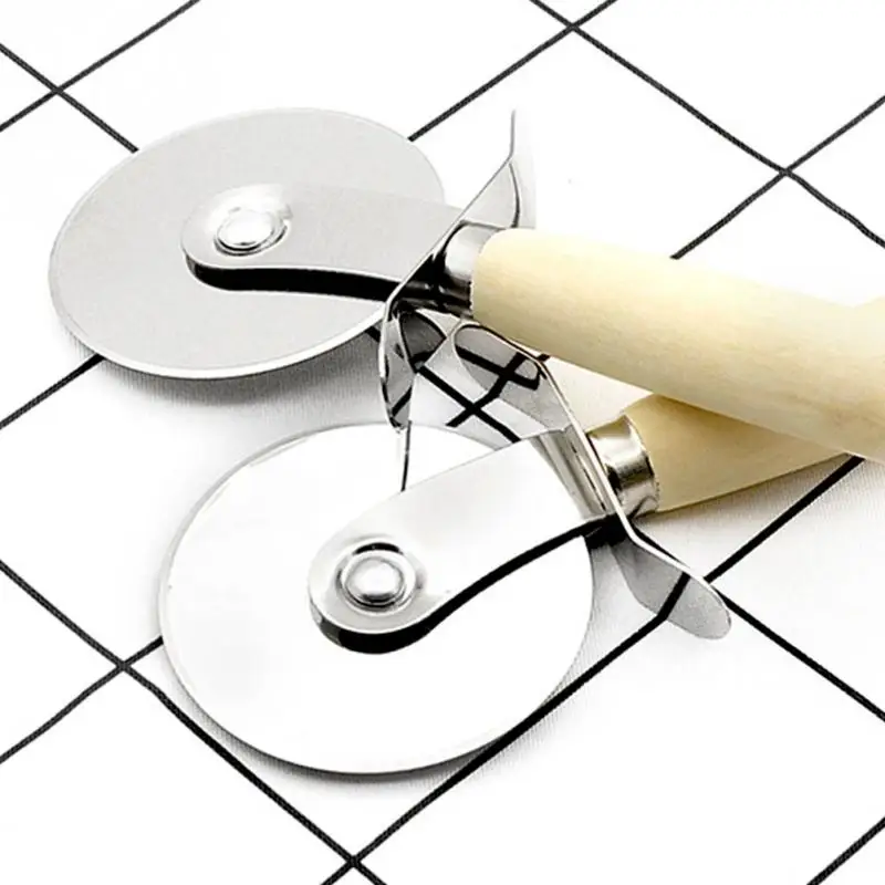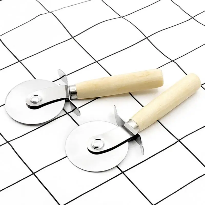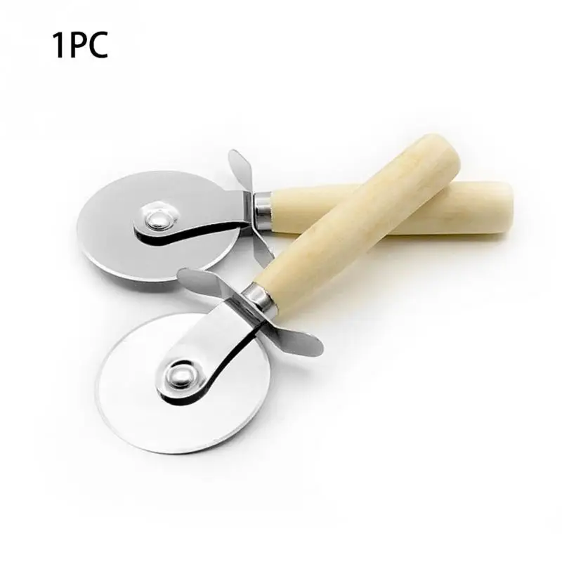 1PC Round Pizza Cutter Stainless Steel With Wooden Handle Pizza Knife Cutter Pastry Pasta Dough Kitchen Baking Tools