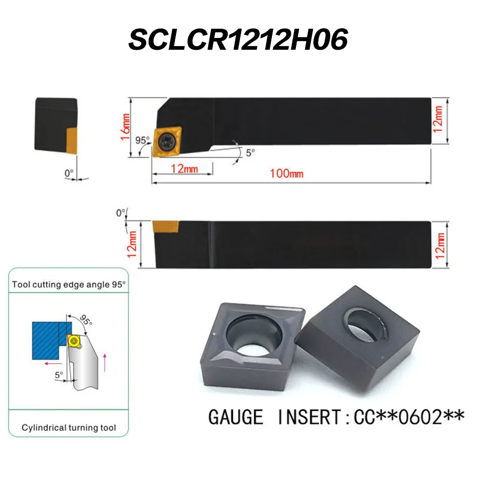 1pc SCLCR1212H06 Lathe External Turning Tool Holder + 10pcs CCMT060204 Carbide Insert with T8 Wrench Used on CNC Lathe Machine