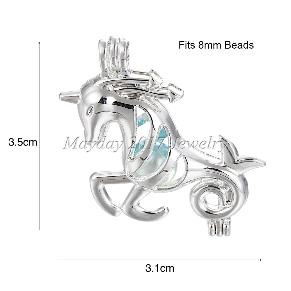1pc Silver Paw Print Heart Wizard Leaf Unicorn Oyster Pearl Cage Jewelry Making Beads Cage Pendant Essential Oil Diffuser Locket