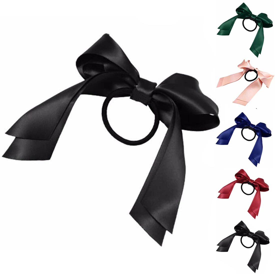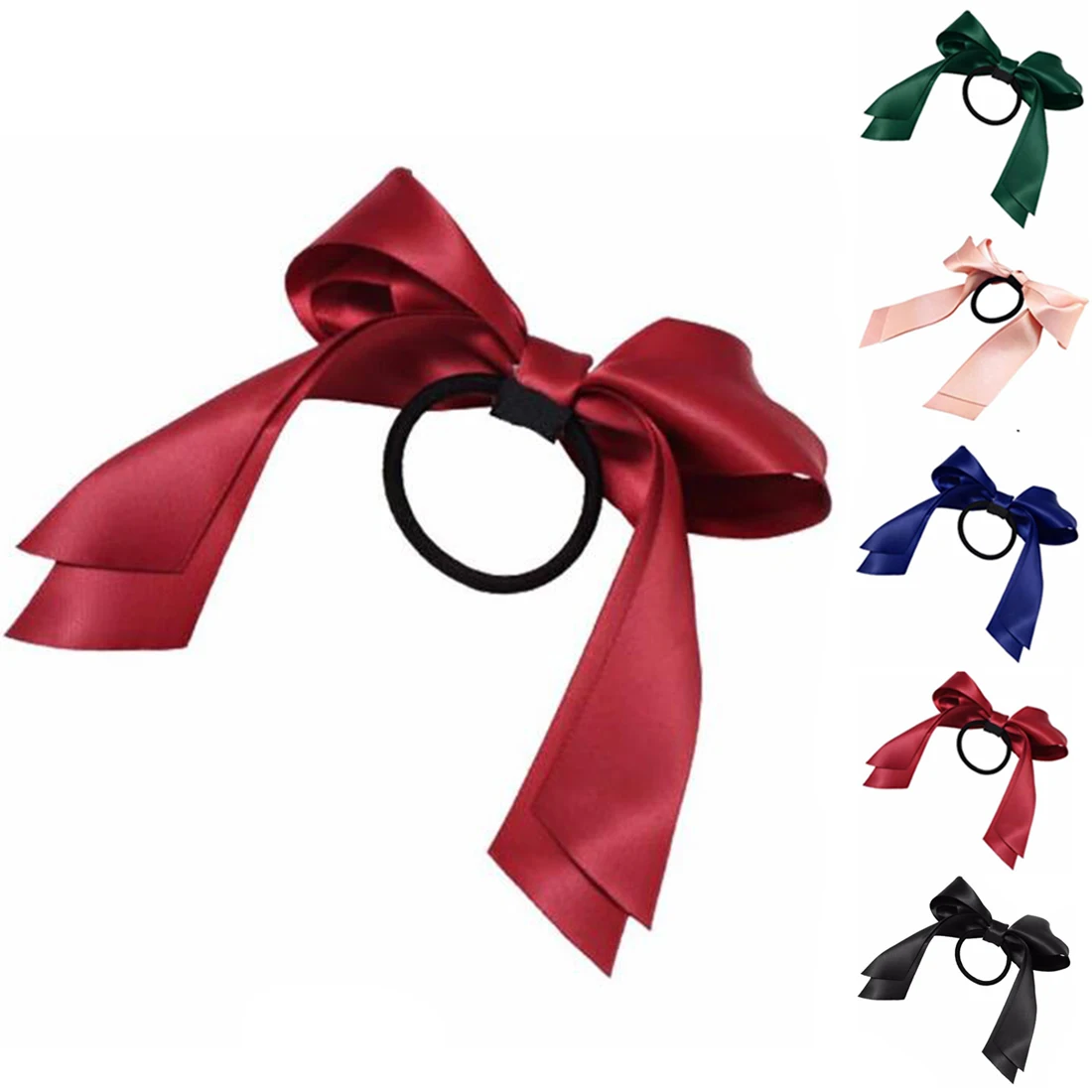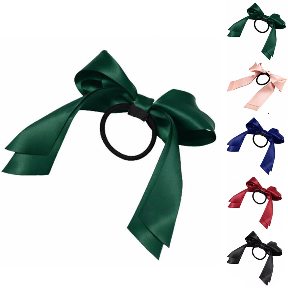 1pc Women Tiara Satin Bow Tie Scrunch Hair Band Ribbon Scrunchie Ponytail Holder Rope Rings Hair Accessories for Girl