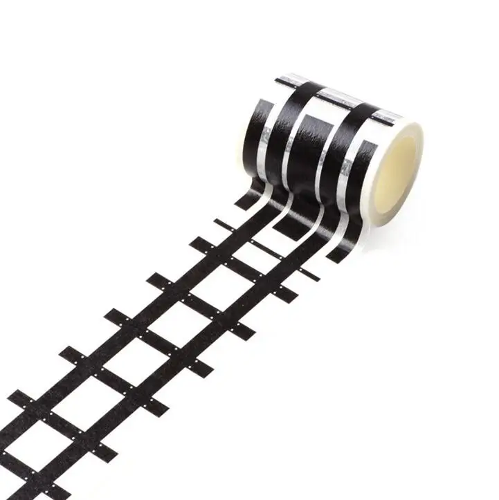 1PCS 48mm*5m Railway Road Washi Tape Black and White Decorative Tape Adhesive Masking Tape Road for School Office Supplies