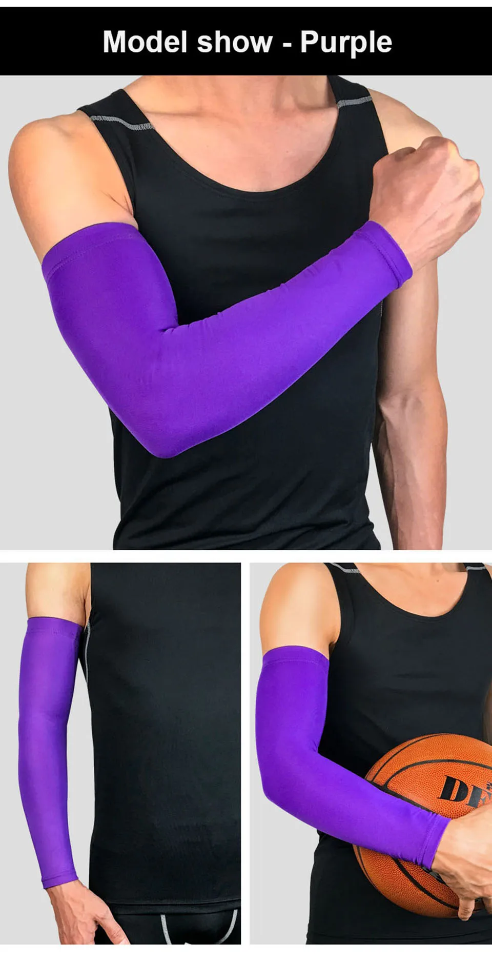 1Pcs Breathable Quick Dry UV Protection Running Arm Sleeves Basketball Elbow Pad Fitness Armguards Sports Cycling Arm Warmers(1PCS,not 1 Pair)