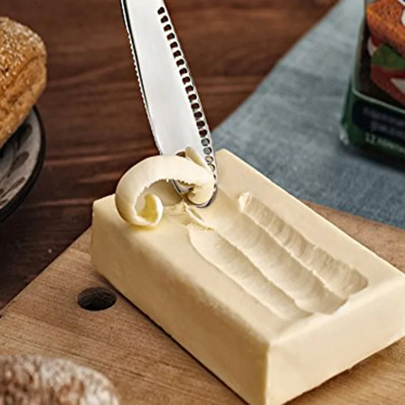 • The butter knife is a unique essential with three functions working with distinction: it can be used as a bread cutter, butter curler and spreader, and so on. The ergonomic handle enable you to hold it comfortably in either right or left hand effortlessly.