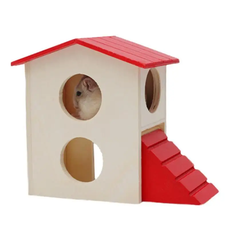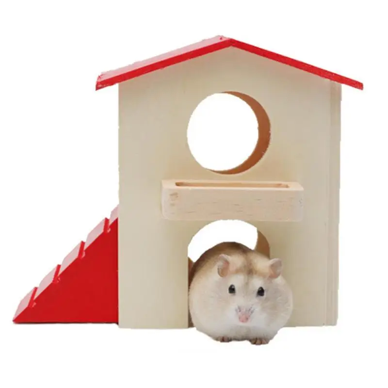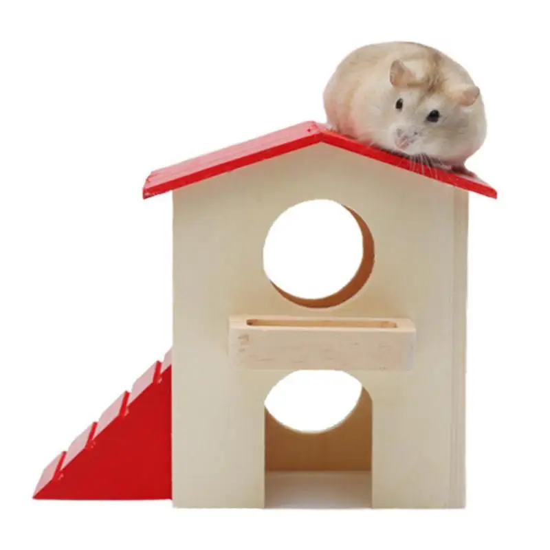 1pcs Cat Pet Hamster House Mini Rat Mouse Pet Top Red Triangle Wooden Hamster Sleeping Bed Room Nest House Log Cabin Cage