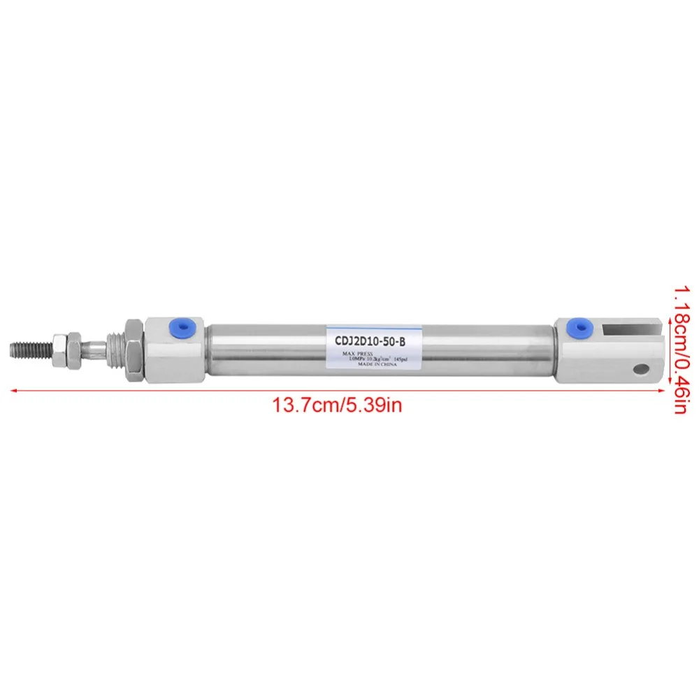 This dual acting cylinder is made of high quality stainless steel, durable for use. The cylinder stoke is 50mm / 2inch, the diameter is 10mm / 0.4inch. Compact size, easy to use.