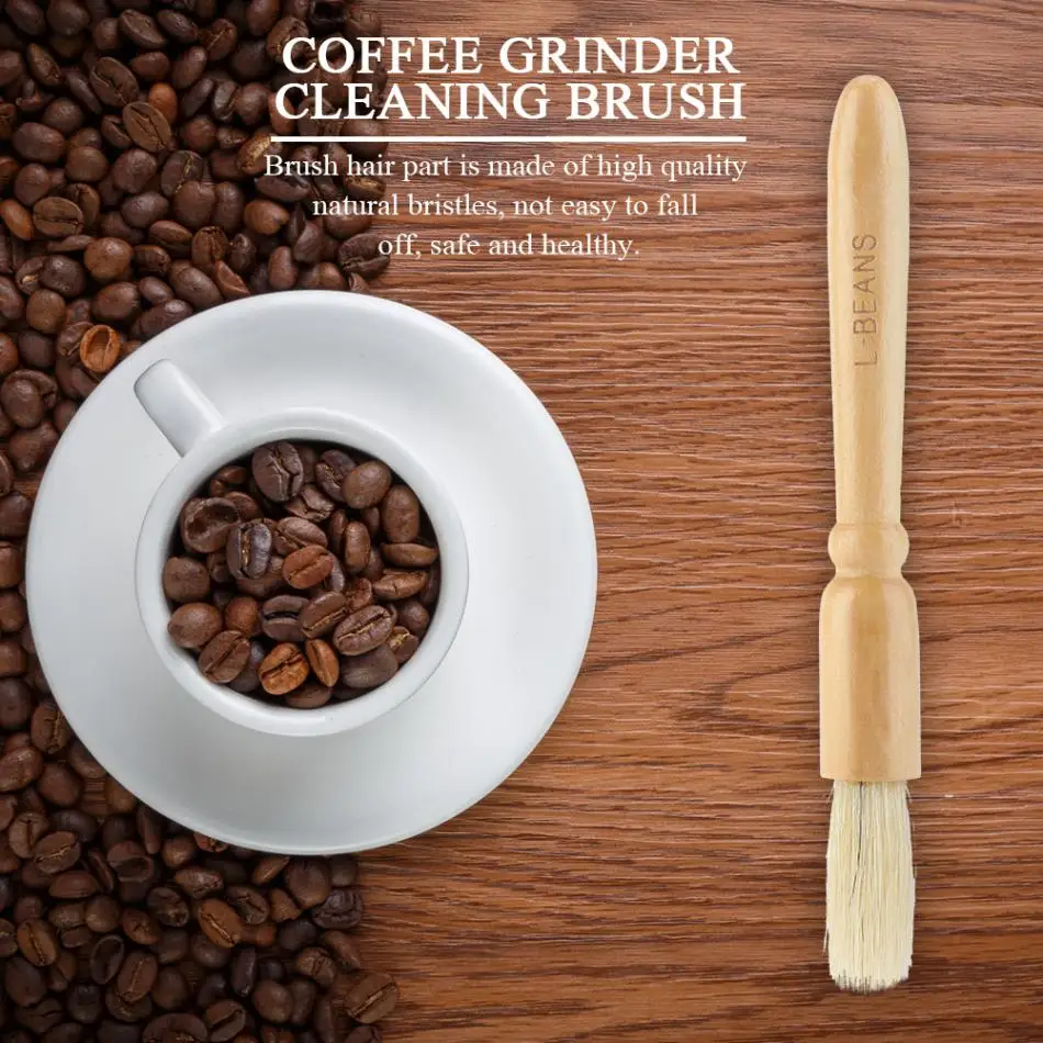 1pcs Coffee Grinder Machine Cleaning Brush Heavy Wood Handle & Natural Bristles Wood Dusting Espresso brush for Barista
