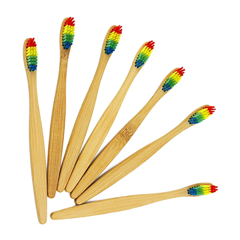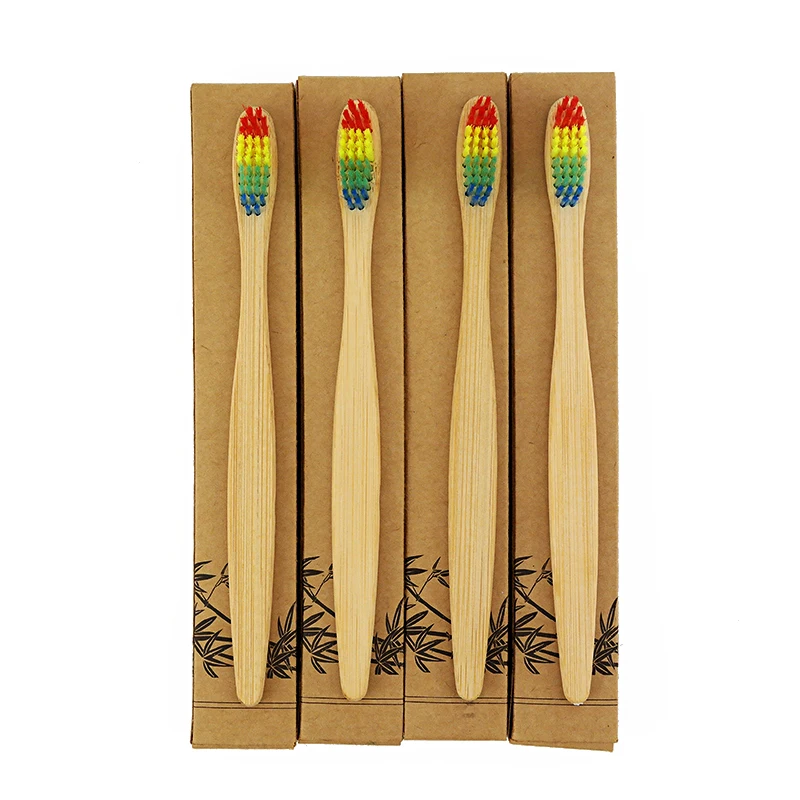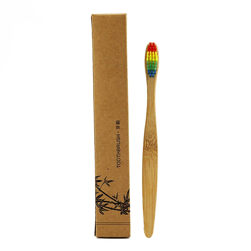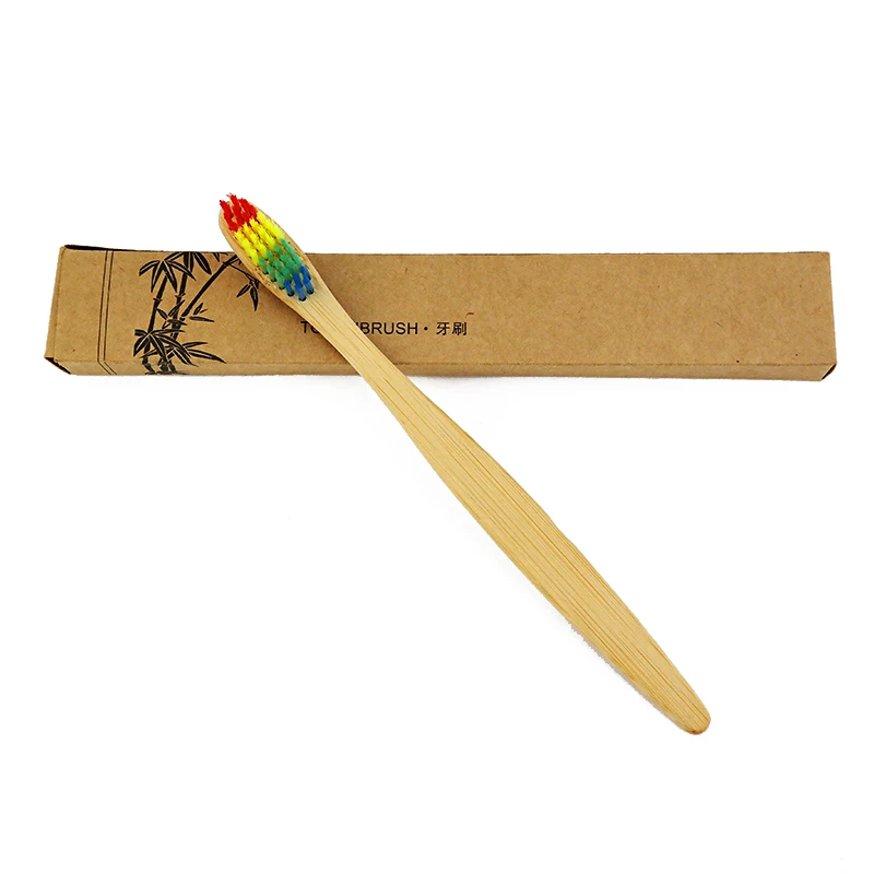 1pcs Colorful Rainbow Wooden Head Bamboo Toothbrush Wholesale Environment Bamboo Tooth brush Oral Care Soft Bristle