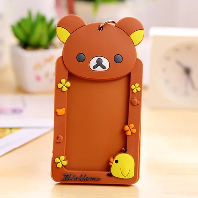 1pcs Cute Cartoon Silicone Card ID Holder With String Credit Card Bus Card Case Key Holder Ring Luggage Tag Trinket for students