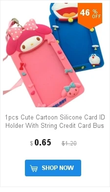 1pcs Cute Cartoon Silicone Card ID Holder With String Credit Card Bus Card Case Key Holder Ring Luggage Tag Trinket for students
