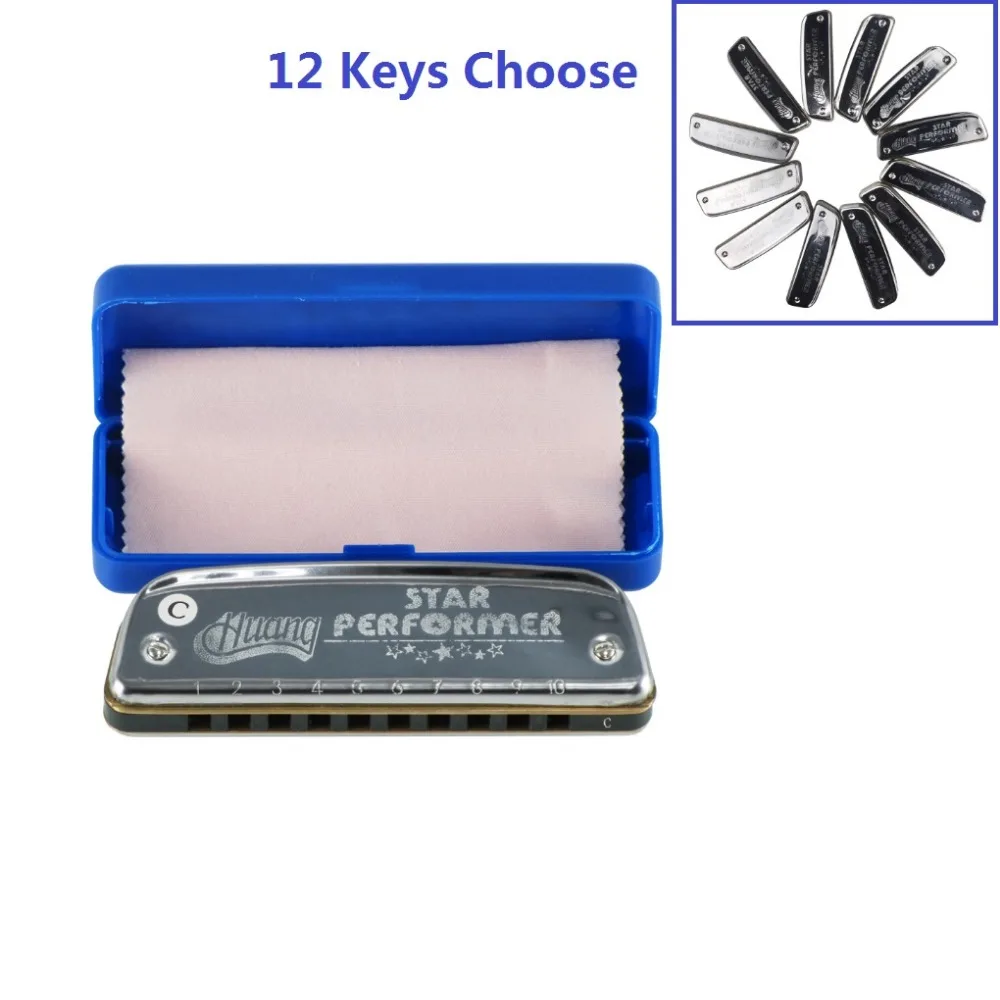 1PCS Huang 10 Holes Harmonica Diatonic Blues Mouth Organ Key of C, A,B,D,E,F,G, bA, bB ,bE ,C#(bD) ,F#(bG) Key Choose with Case