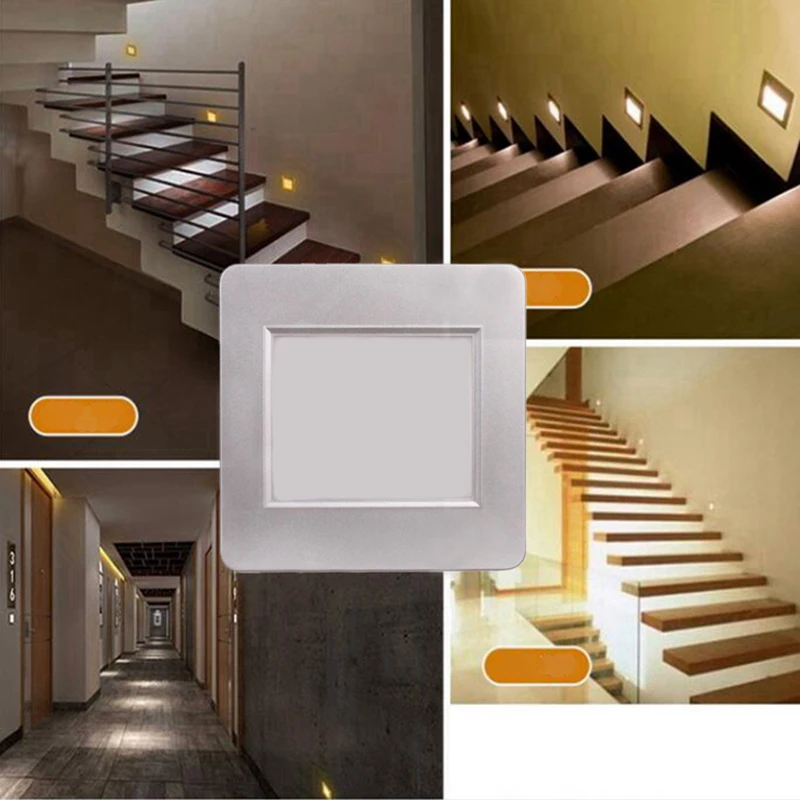 1pcs LED Stair Light PIR&Light Radar Sensor Recessed Step Lamp Input 100V-240V Footlight Warm White Stairway Lamp 5-Color