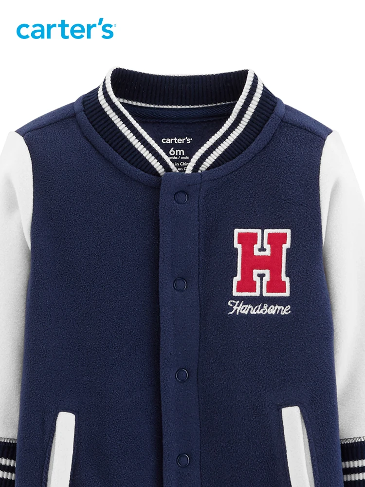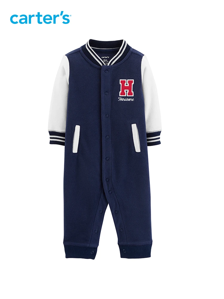 1pcs Letter embroidered stick Jersey Handsome Fleece Jumpsuit Carter’s baby boy fall winter clothing 118I414