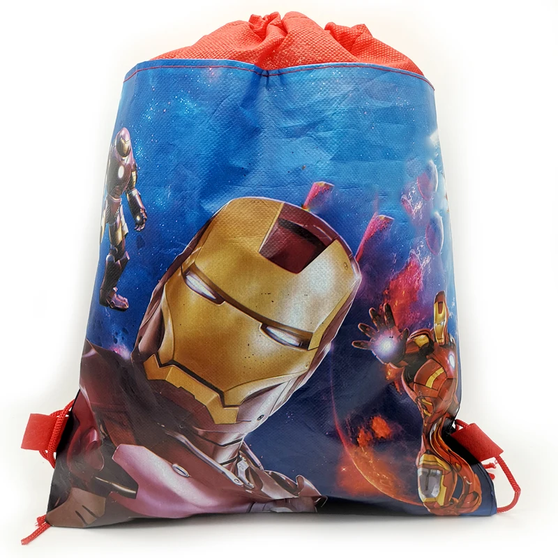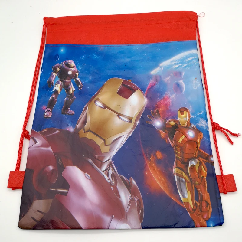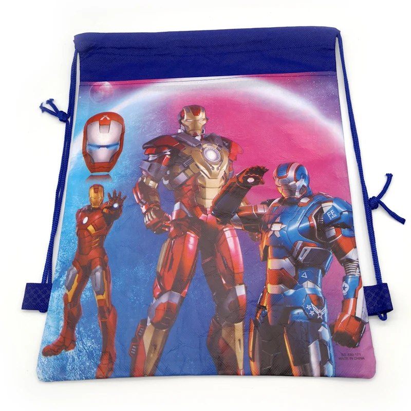 1pcs/lot Happy Baby Shower Party Kids Boys Favors Iron Man Theme Decorate Birthday Party Cartoon Design Drawstring Gifts Bags