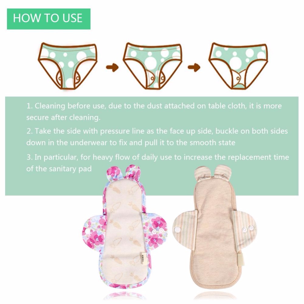 This sanitary pad is washable and reusable. It is made organic cotton, which is antibacterial, anti allergic, healthy, environmental. High absorption, keep skin fresh, no bad smell, letting you have a more comfortable physiological experience. Easy to use, just clip it around underwear and it will not easy to move which can prevent leakage. So why not try it?