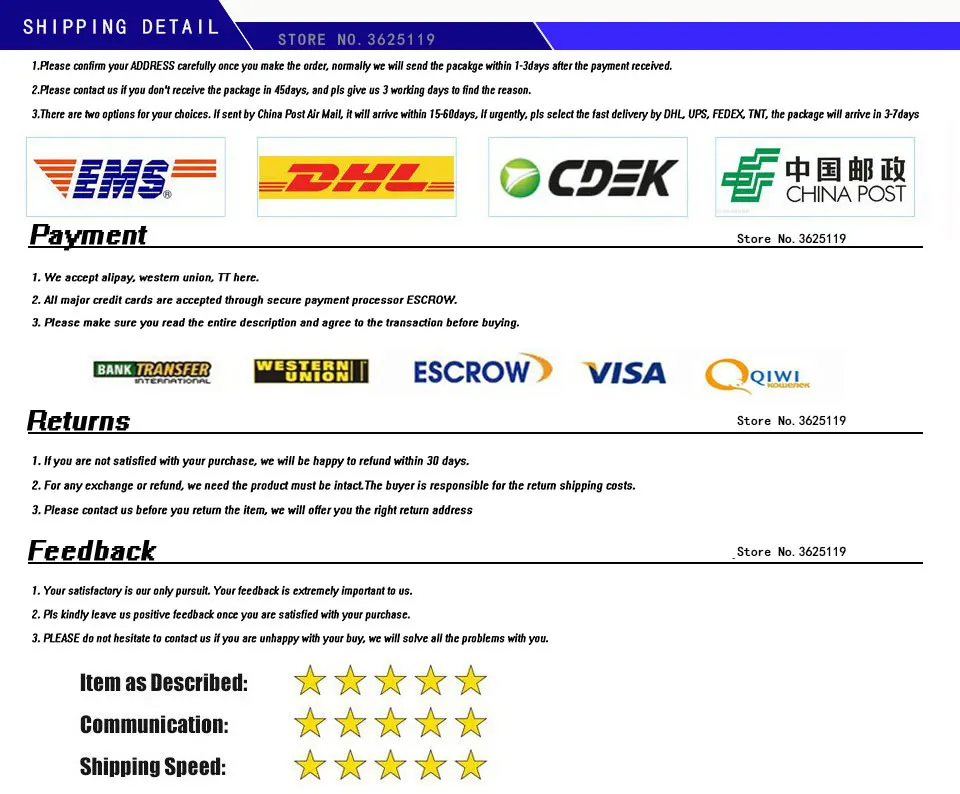 *You can submit refund requests within 15 days after the guaranteed period for delivery (45 days) has expired. You can do it by sending a message on Contact Us page