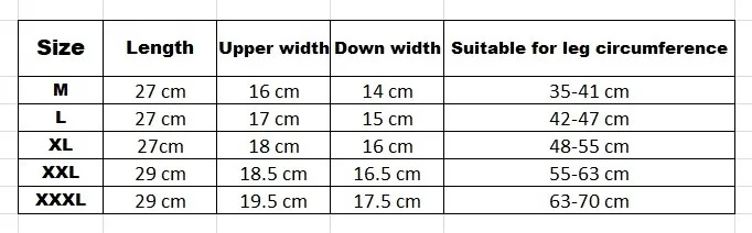 XL Length 27cm, leg girth: 48-55cm Upper Width 18cm Down Width 16cm