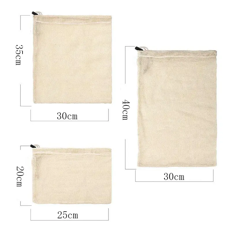 More and more people use cotton bags to go shopping. First, the good air permeability of the cotton mesh bag keeps vegetables and fruits fresh. Secondly, the cotton mesh bag is made of natural biodegradable cotton. Unlike the disposable plastic bag, this product is reusable. It is ecological The dimensions are suitable for daily purchases. It will like you. An ecological life makes our home more beautiful, make your purchases more fashionable!