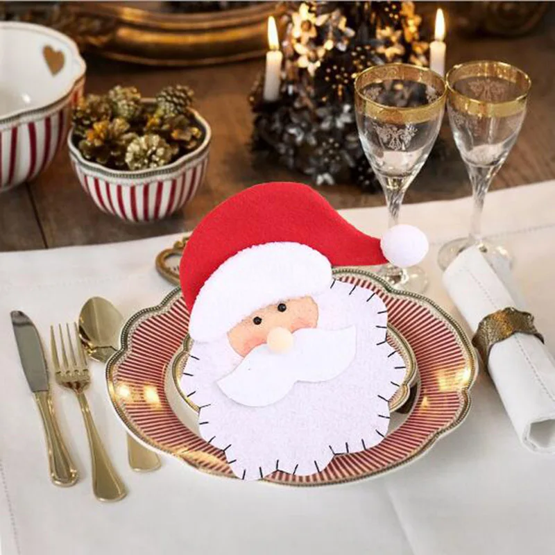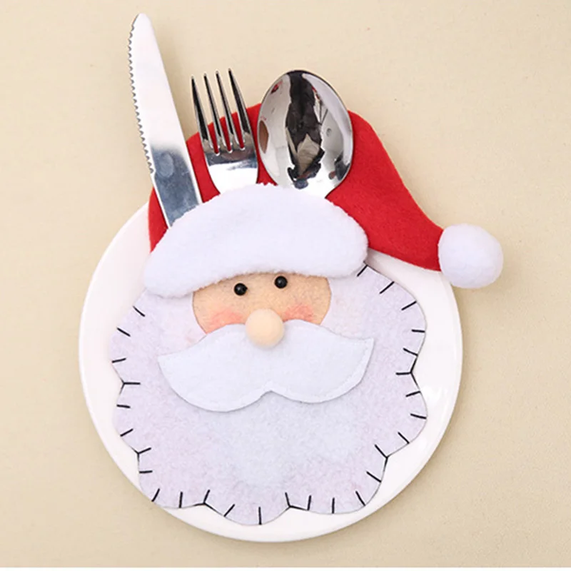 1Pcs/Set Christmas Hat Cutlery Bag Candy Gift Bags Cute Pocket Fork Knife Candy Holder Table Dinner Decorative Tableware
