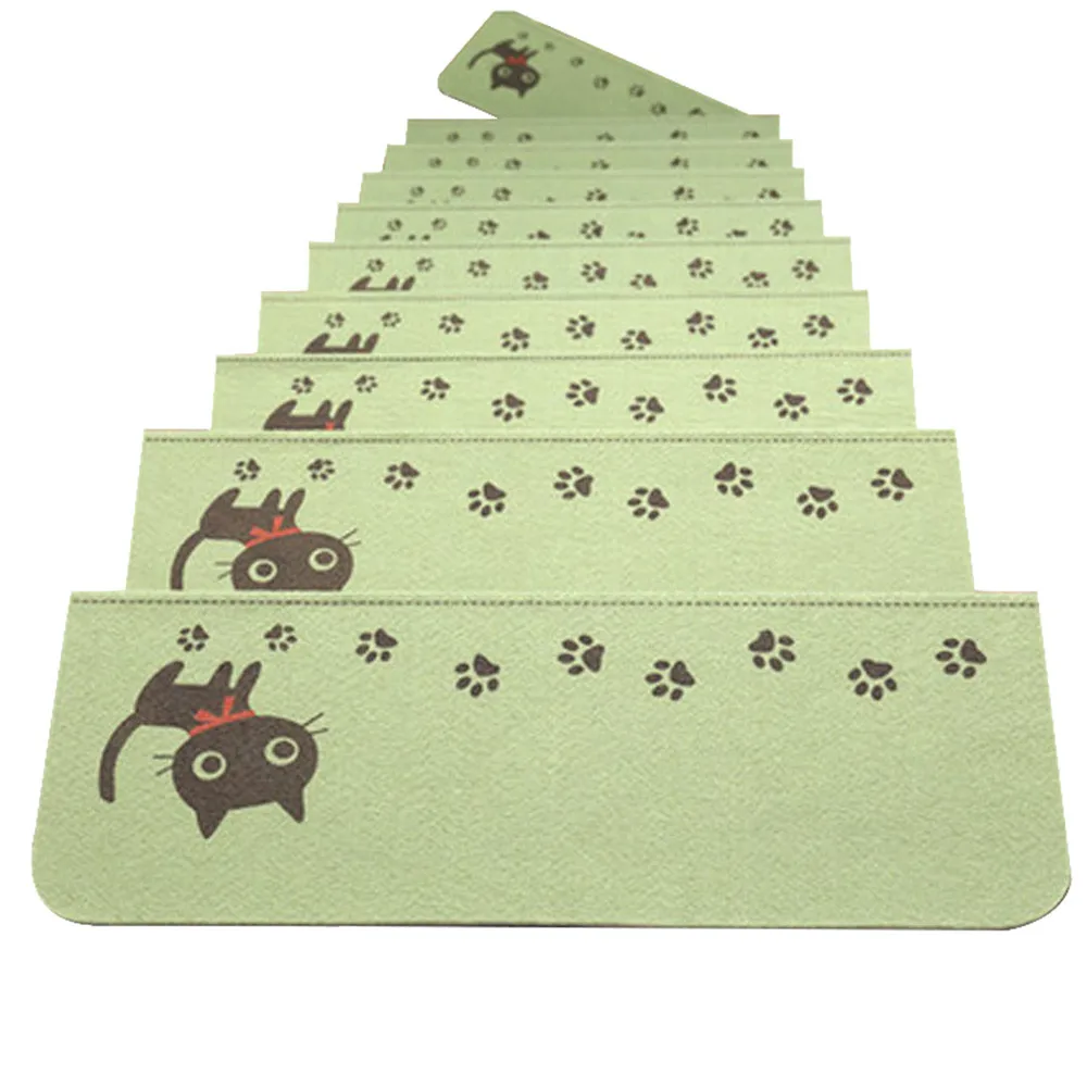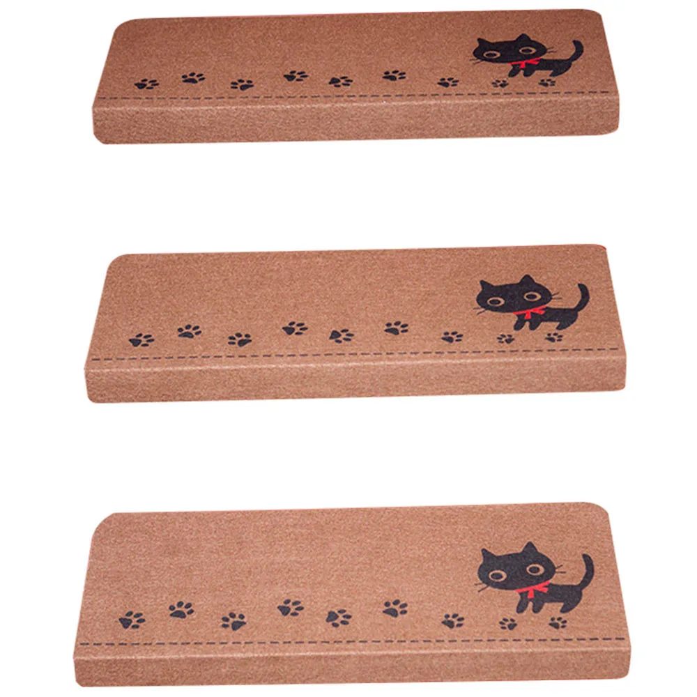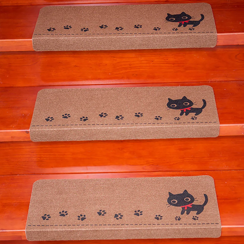 1Pcs Stairs Mat Cute Cat Printing Step Basic Non-Slip Rubber Backing Skid-Resistant Carpet Stair Gripper Home Floor Mat Decor
