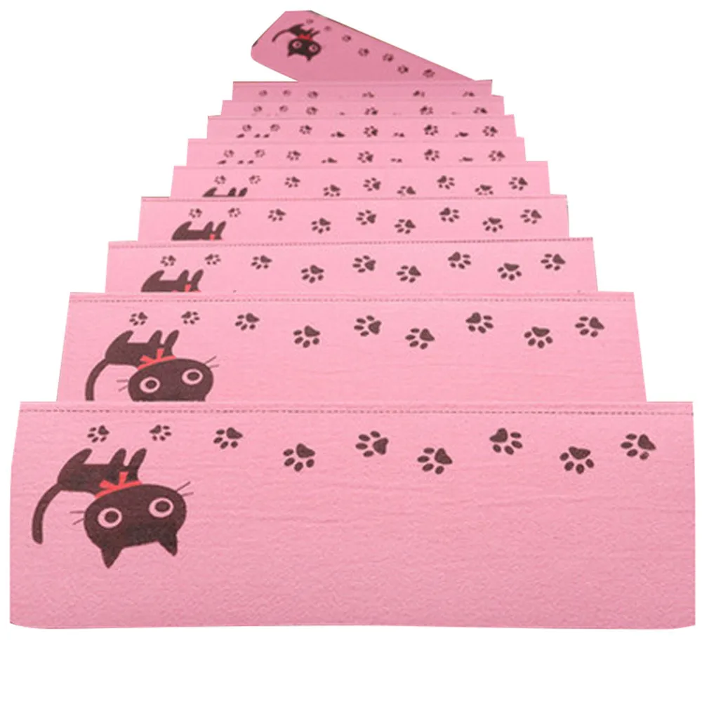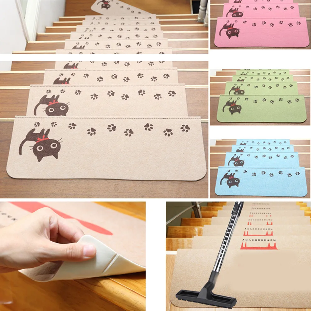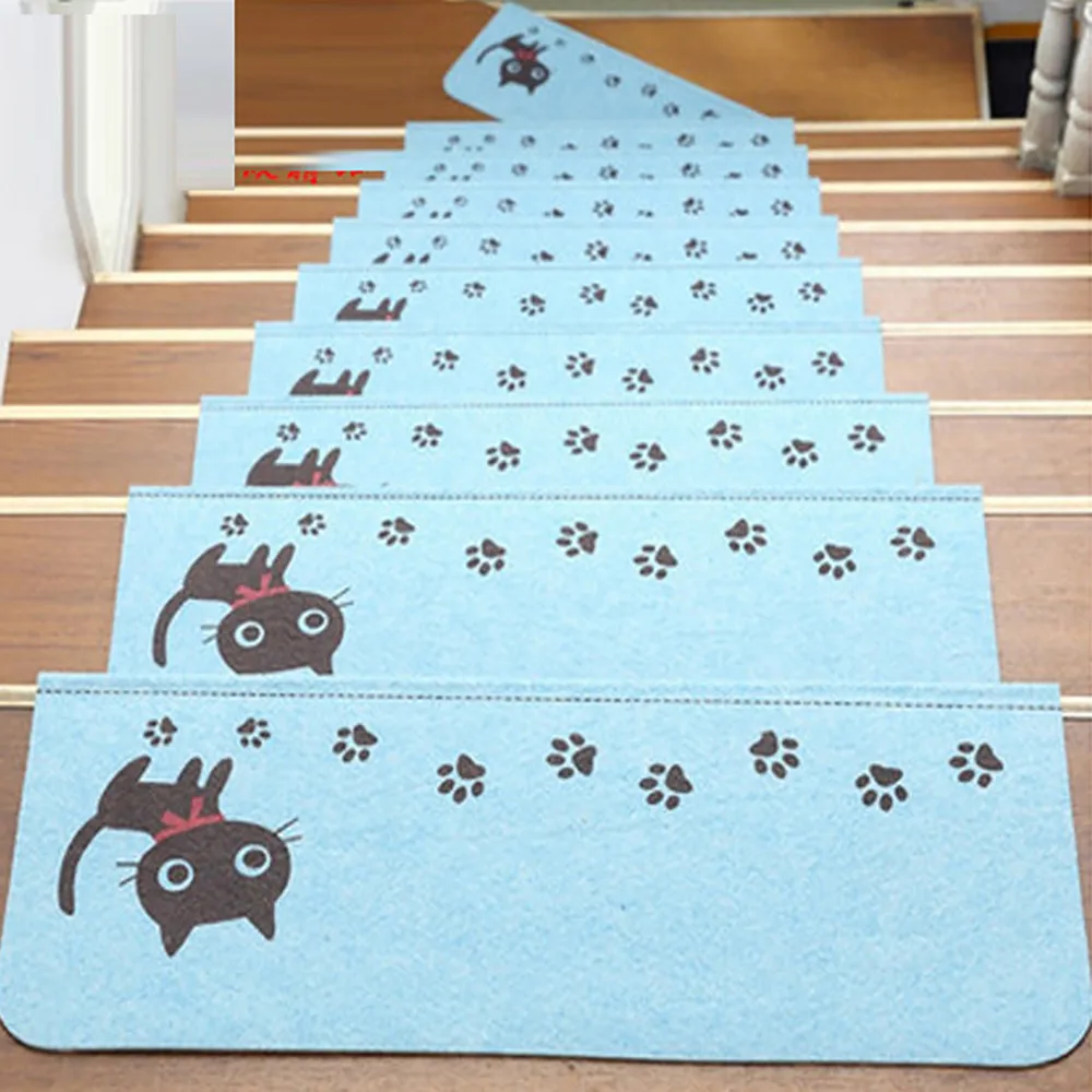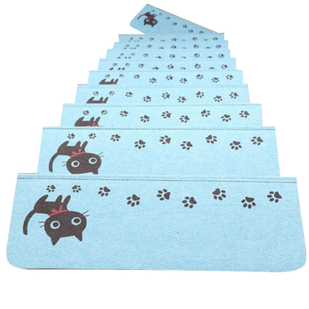 1Pcs Stairs Mat Cute Cat Printing Step Basic Non-Slip Rubber Backing Skid-Resistant Carpet Stair Gripper Home Floor Mat Decor