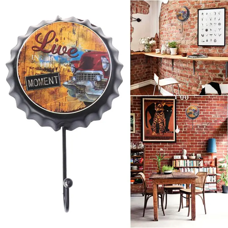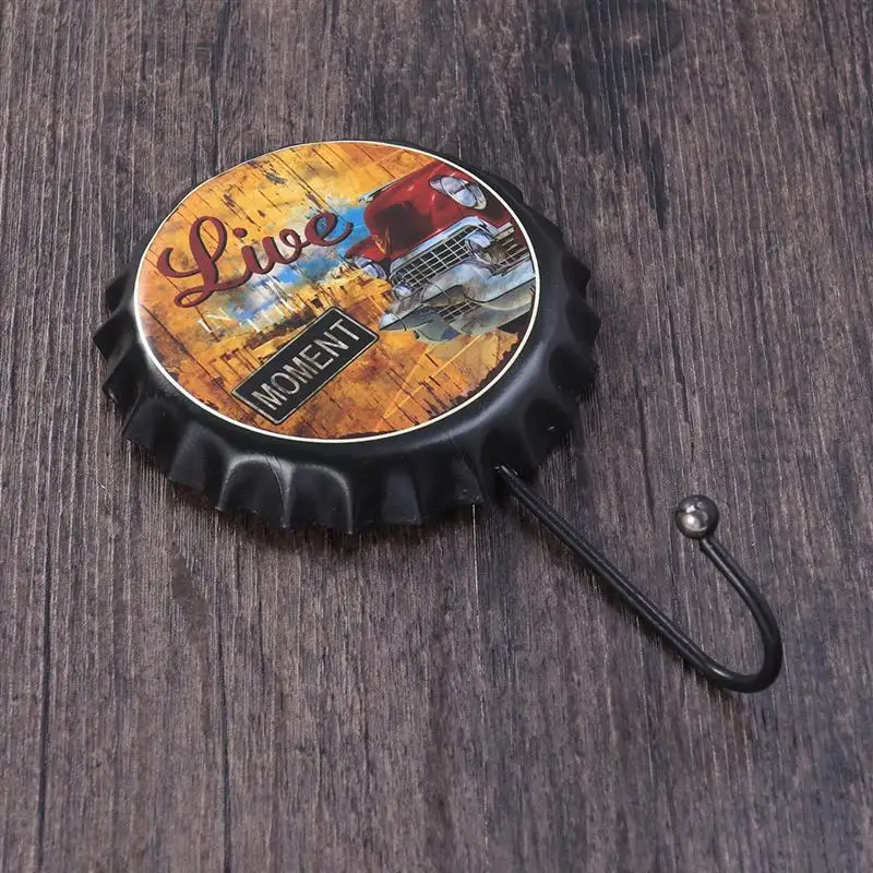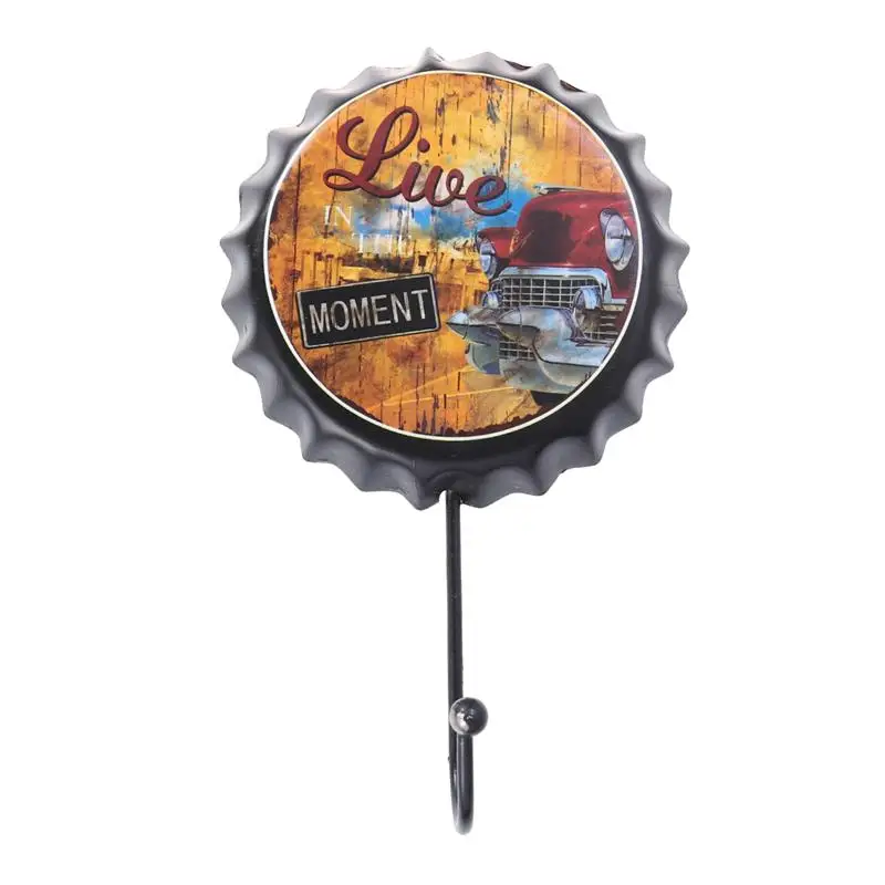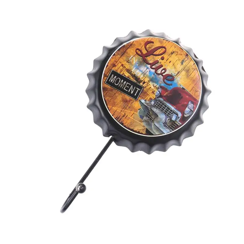 1pcs Wall Hooks Wrought Iron Beer Bottle Caps Creative Retro Decorative Hanging Hooks Wall Hooks for KTV Home Bar
